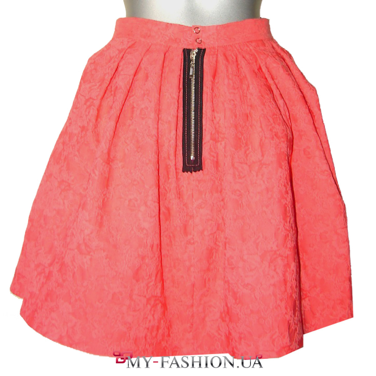Красивая пышная юбка-колокольчик идеально подходит для жаркого времени года. Набивной рельефный рисунок на ткани является достойным украшением изделия. Карманы в боковых швах делают юбку очень комфортной в ношении. Застёгивается на спинке на две кнопки и наружную молнию. Материал: жаккард. Состав: 70% - хлопок, 30% - полиэстер.В наличии 44 размер, длина изделия с поясом - 45 см. Юбку можно изготовить на заказ в любом размере по вашим индивидуальным меркам.