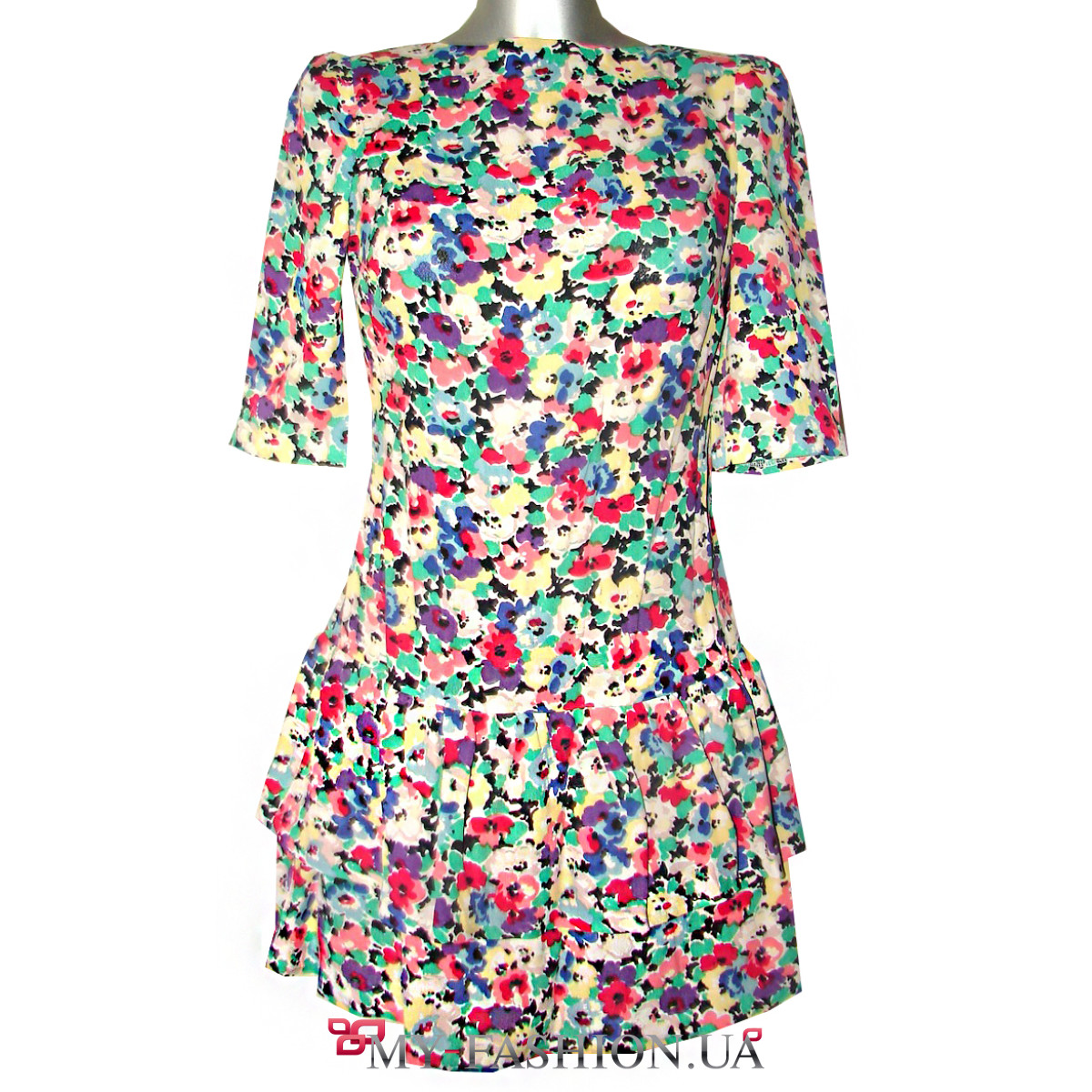 Оригинальное платье-туника из качественного индийского москрепа. Эта ткань прекрасна даже в очень жаркую погоду, тело дышит и хорошо продувается. Яркая цветочная расцветка обеспечит хорошее настроение вам и окружающим. Короткий рукав и приталенный силуэт замечательно подчеркнёт фигуру. Юбка из оборок отлично выделяет ножки и бёдра. Платье удобно застёгивается на длинную потайную молнию на спинке. Материал: москреп. В наличии туники размеров 44, 46, 48, 50.