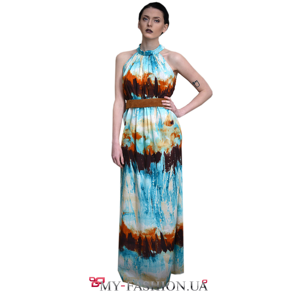 Стильное длинное платье из натурального цветного хлопка станет отличным дополнением к вашему летнему гардеробу. Изделие яркой расцветки, длиной достигает косточек. Верх без рукавов с американской проймой отлично выглядит с коричневым поясом на талии. Сочетайте с однотонной сумочкой и босоножками на высоком каблуке. Состав: 100% хлопок. Доступные размеры: 36, 38. Может быть изготовлено на заказ в любом размере по вашим индивидуальным меркам.