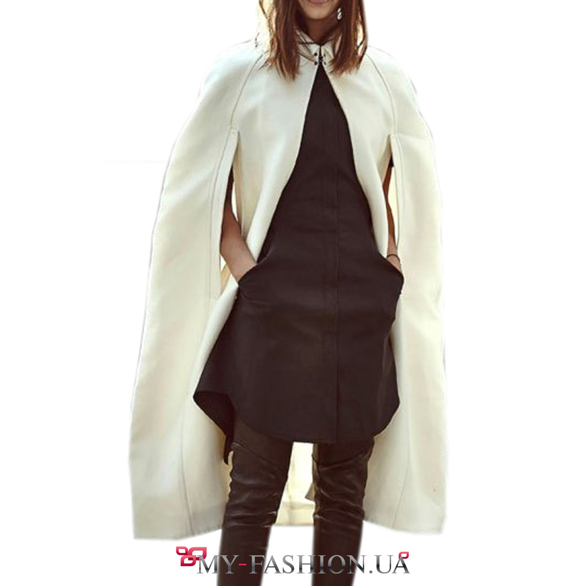 Невероятно стильное пончо с круглым воротником и оригинальной металлической застежкой. Изделие надевается как накидка и фиксируется у шеи с помощью декоративного крючка. Необычный крой и качественный материал, который прекрасно держит форму, придают плечам приятные скруглённые очертания. Представленная модель смотрится очень стильно и изысканно в сочетании с любой одеждой. Размеры в наличии: XXS, XS, S, M, L, XL. Состав: шерсть - 70%, вискоза - 30%. Цвет изделия можно изменить по вашему желанию.