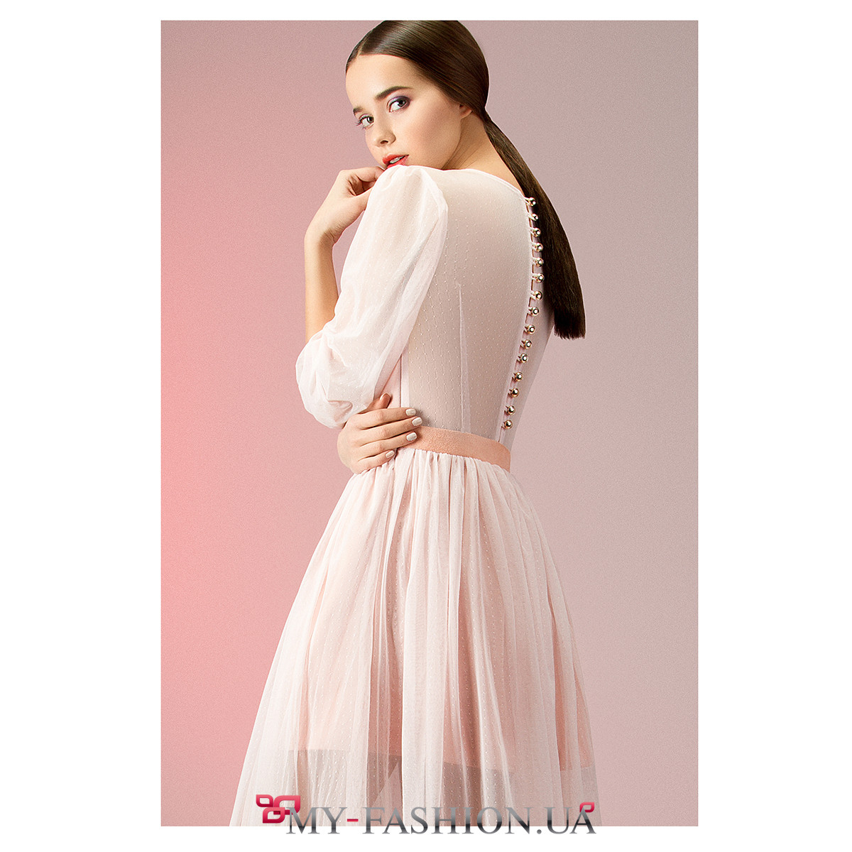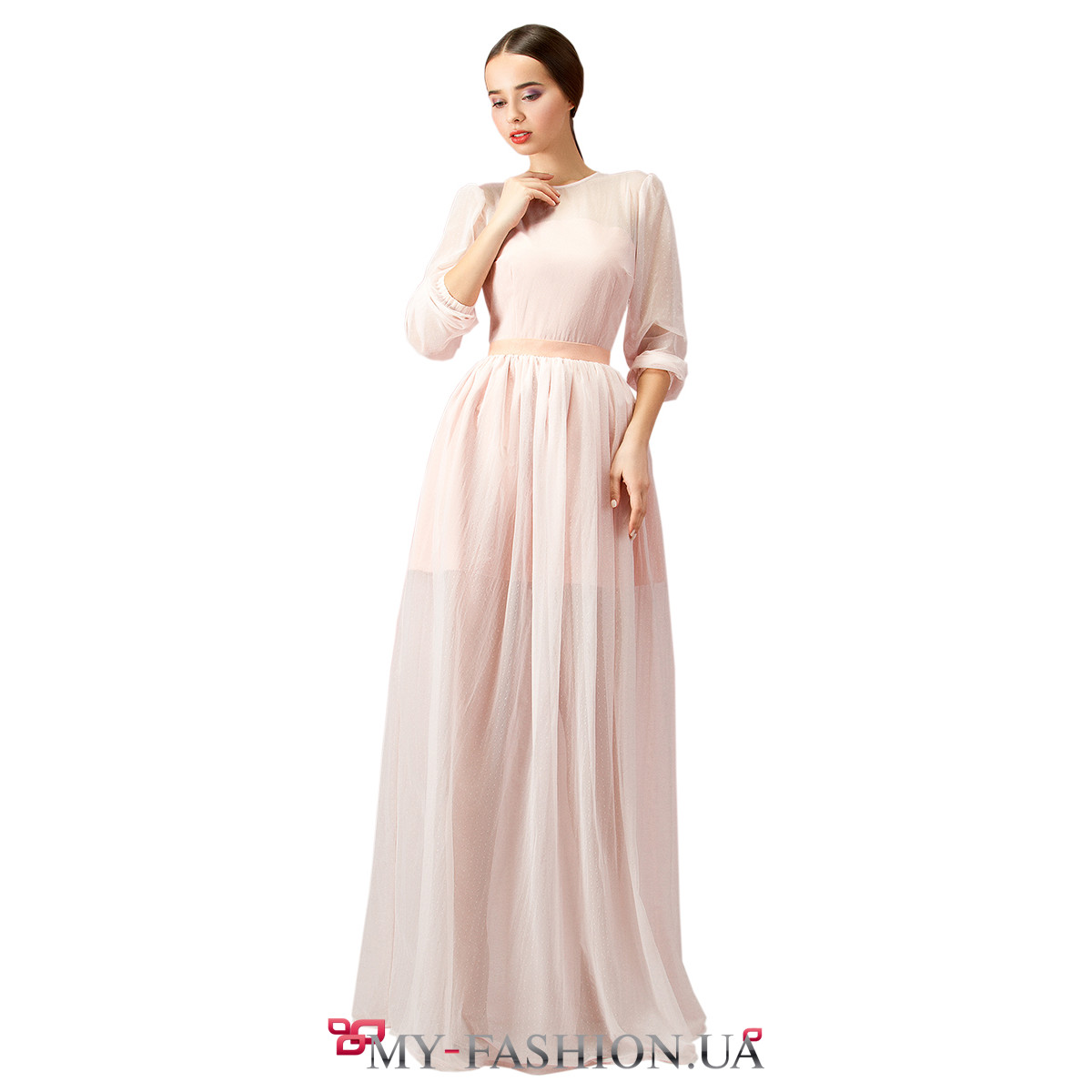 Нежное вечернее платье из невесомого лёгкого полотна. Изделие на хлопковой подкладке, с длинным широким рукавом, собранным в аккуратный манжет. Вырез горловины полукруглый, неглубокий, талия подчёркнута тонким поясом. Пышная юбка со множеством мелких складок красиво струится при ходьбе. Изделие имеет удобную застёжку на спинке. Материалы: хлопок-шёлк, гипюр. Размеры в наличии: S, M. Можно изготовить на заказ в любом необходимом размере в индивидуальном порядке.