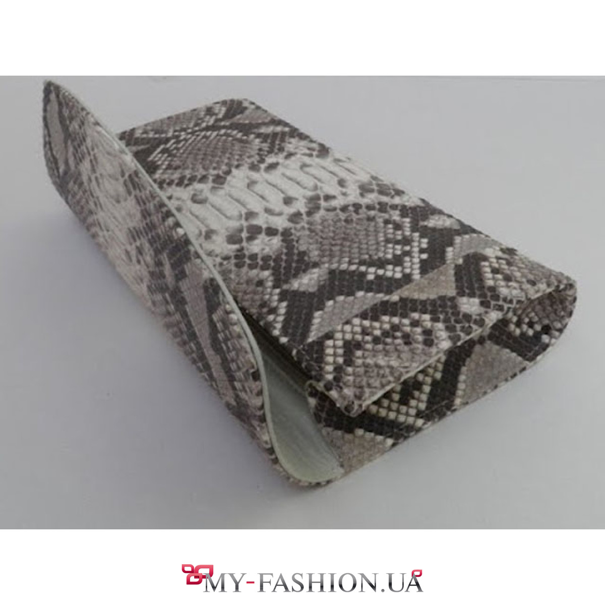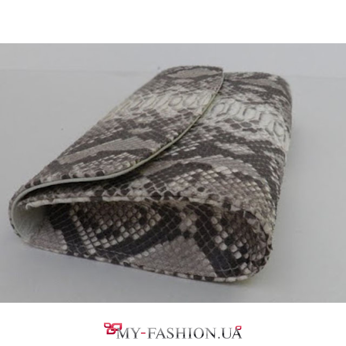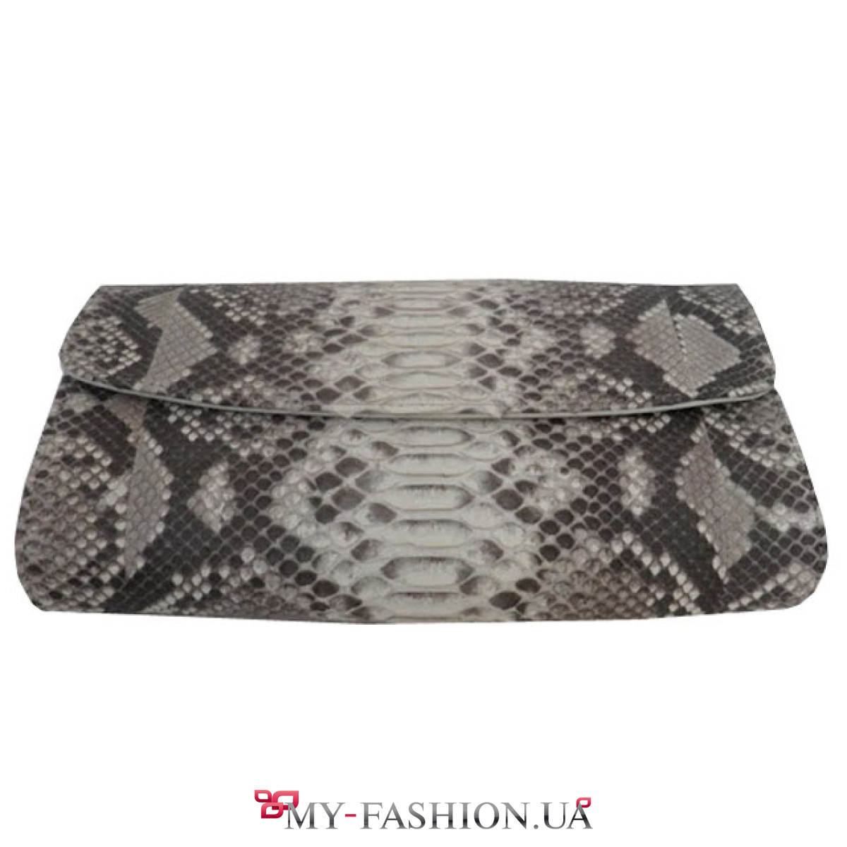 Яркая женская сумка клатч ручной работы из кожи питона. Элегантный клатч, чудесно дополнит образ business lady. Клатч на светлой кожаной подкладке с внутренним карманом на молнии. Размеры о клатча 30/26/15/6см. Ваш вместительный клатч сможет хранить и документы и маленькие женские секреты. Изысканные вечерние платья Вы найдёте в этой категории этого интернет магазина, а офисные платьямы предлагаем вам дополнить яркой брошкой в форме звезды.