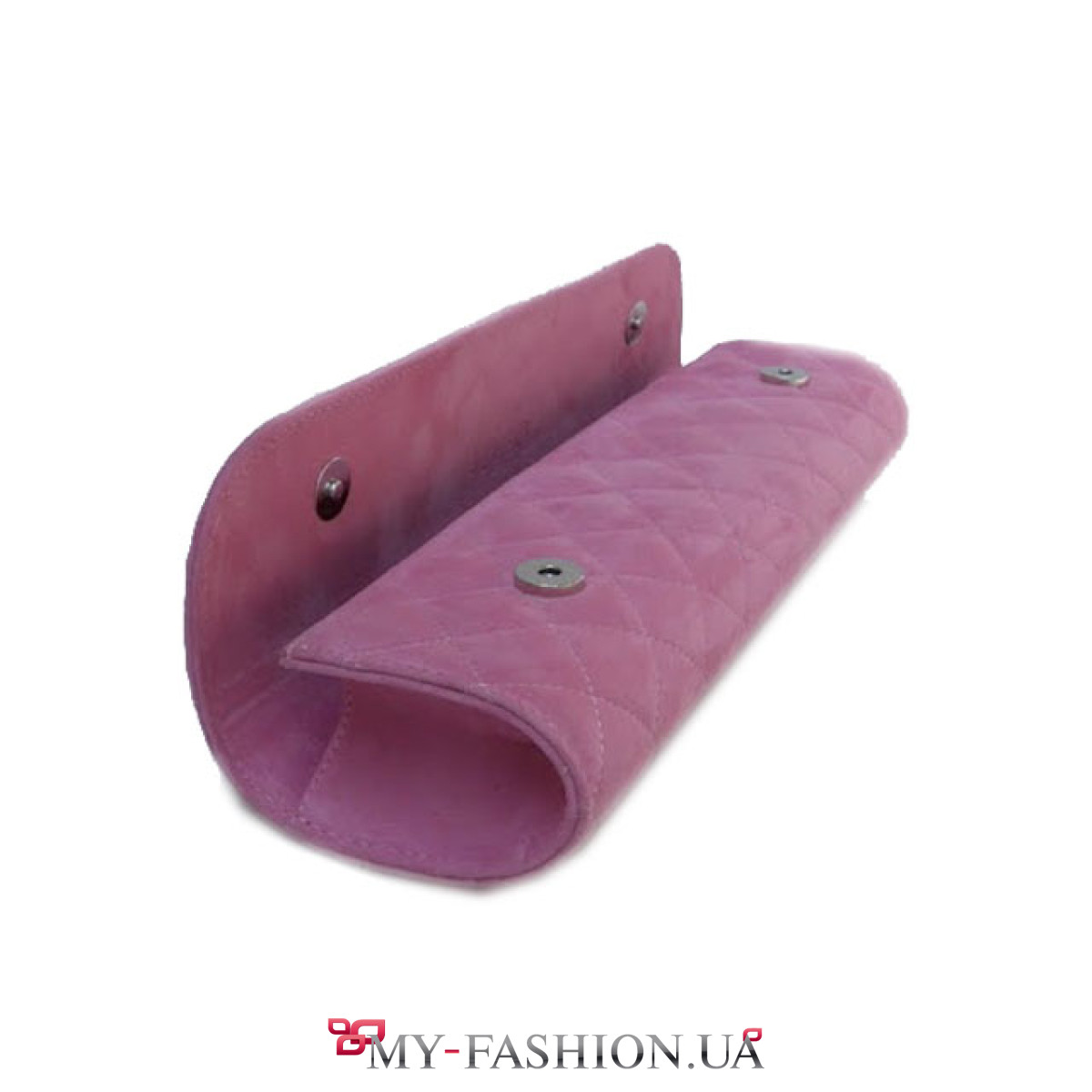 Купить стильный клатч фото Киев. Модная сумка- клатч- ваша визитная карточка на модной вечеринке. Клатч "Трубочка" изготовлен из мягкой, бархатистой замши, в нежно розовом цвете. Модный клатч имеет одно внутреннее отделение и потайной карман в подкладке. Застежка стильной сумки- клатча представляет собой две магнитные кнопки расположенные во внутреннее части клапана клатча. Размеры и цвет изделия можно изменять по вашему вкусу и необходимости. Размер образца:32/10/6. Восхитительные вечерние платья Вы увидите в этой категории этого магазина.