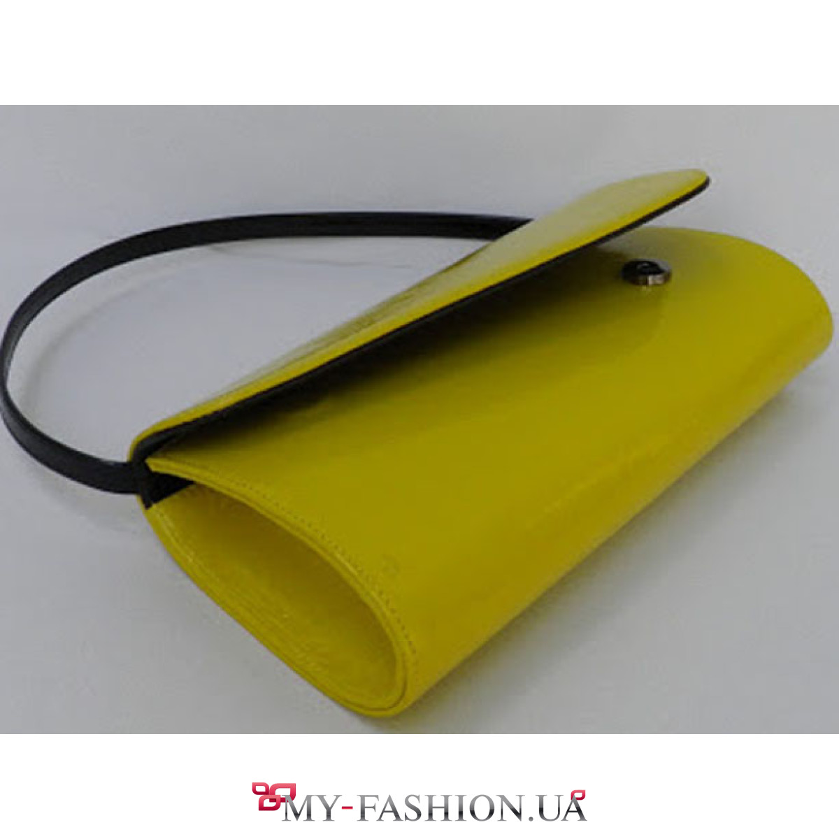 Светло- горчичная женская сумка- клатч с короткой черной ручкой. Кожаная сумка с "косым" клапаном на магнитной кнопке. Сумка- клатч небольшого размера, имеет внутрений карман и хлопковую подкладку. Каркас у модной сумки плотный обтянут глянцевой кожей.Размеры26/22/6. Носите сумочку с модными платьями и стильными куртками любого фасона. Будьте в центре всеобщего внимания. Воспользуйтесь возможность купить платье из трикотажа, ведь это яркая и безумно красивая модель гармонично будет себя чувствовать в любом гардеробе.