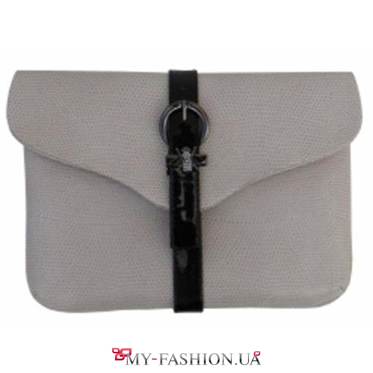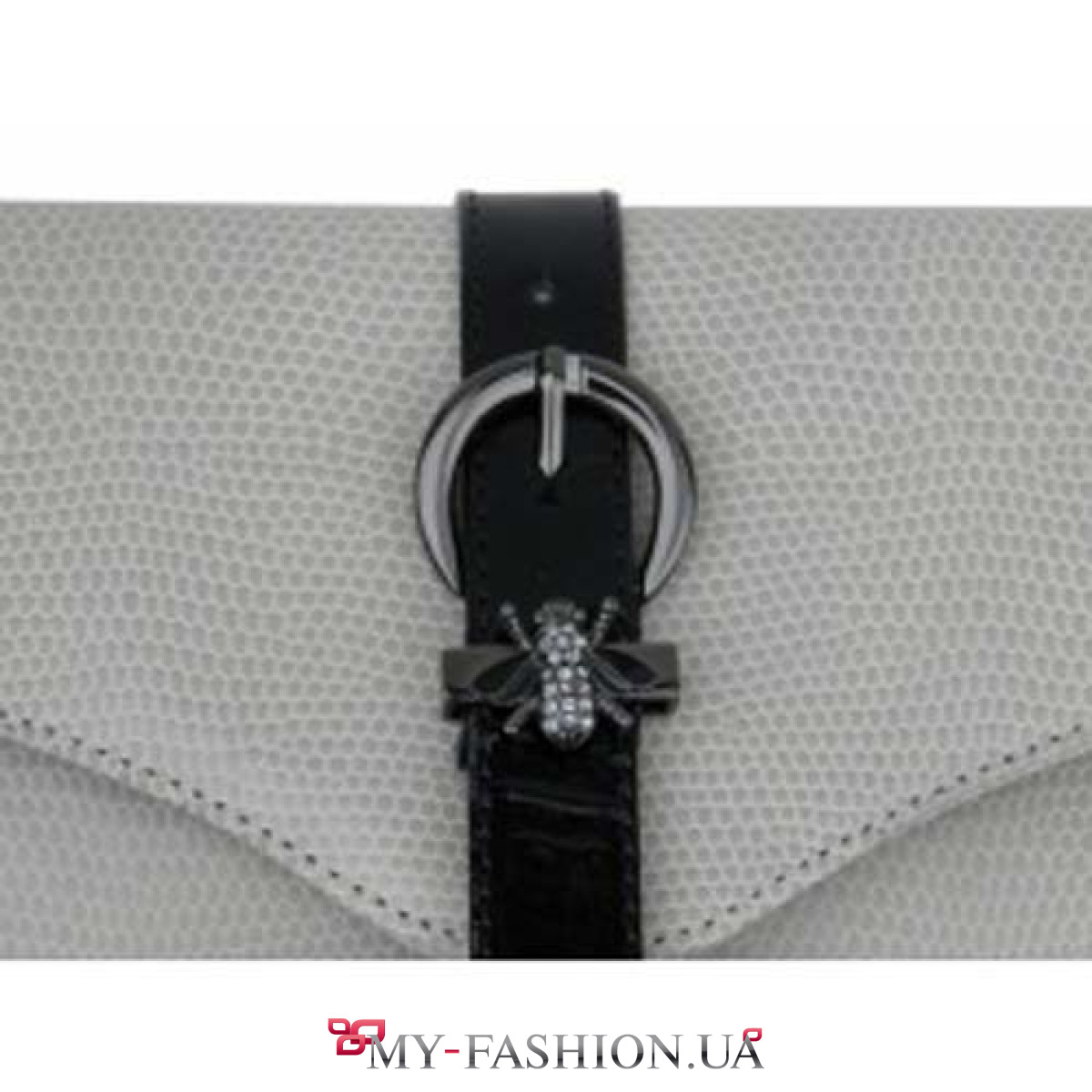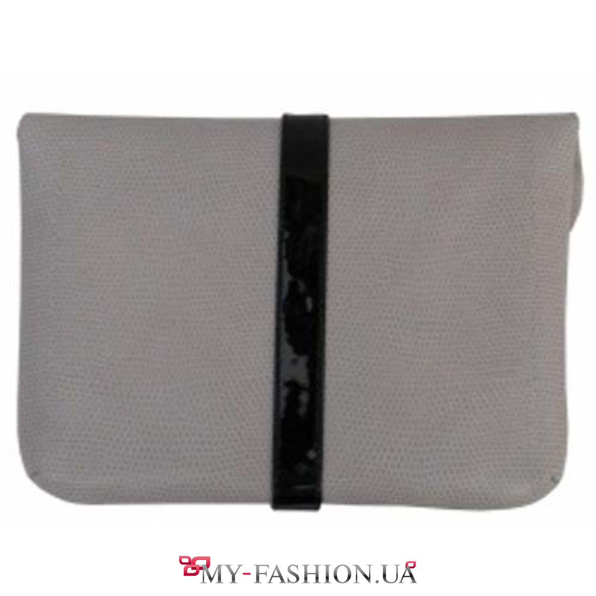 Изделия из натуральной кожи. Сумки и клатчи ручной работы из последней коллекции дизайнера вы найдете на страничках нашего каталога my-fashion.ua. Перед вами фото клатча из натуральной серой кожи с перфорацией. Клатч декоративной застежкой в виде мушки. Внутри одно отделение и карман на молнии. Тканевая подкладка. Размеры: 23/16см. Стильный и удобный клатч для современной девушки. С клатчем мы предлагаем вам одевать белый женский костюм от Ирины Крыловой. Это одежда высокого качества пошива из джерси.