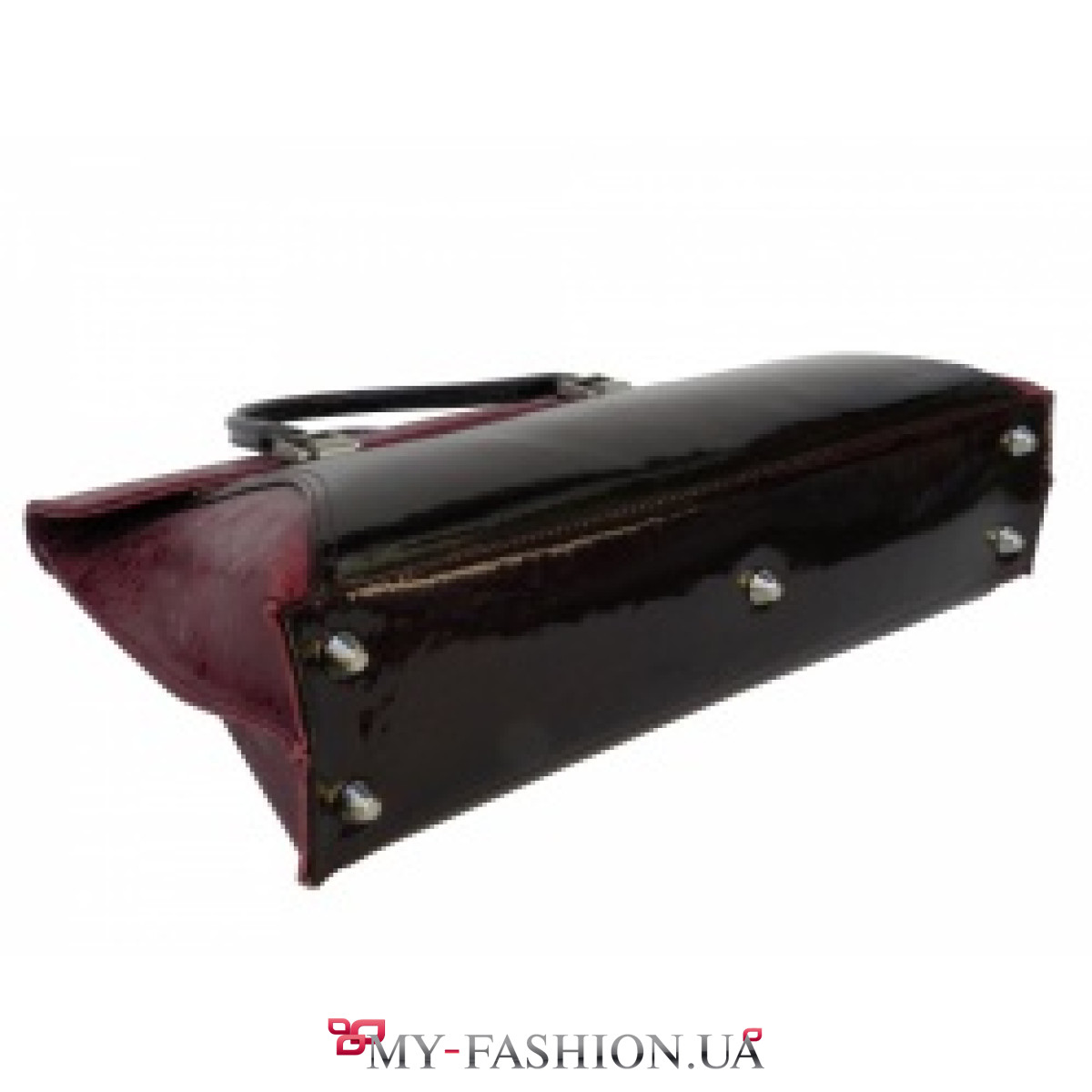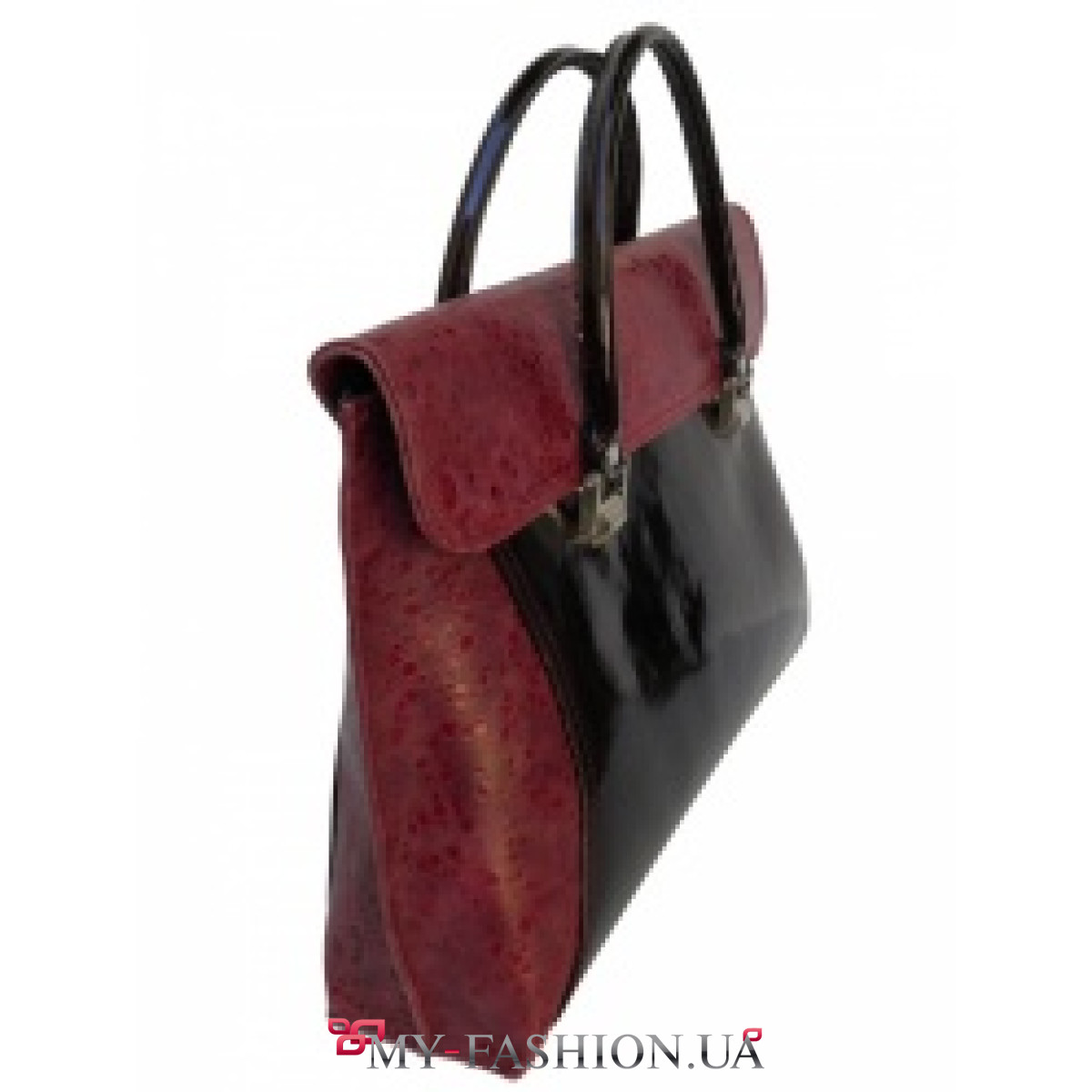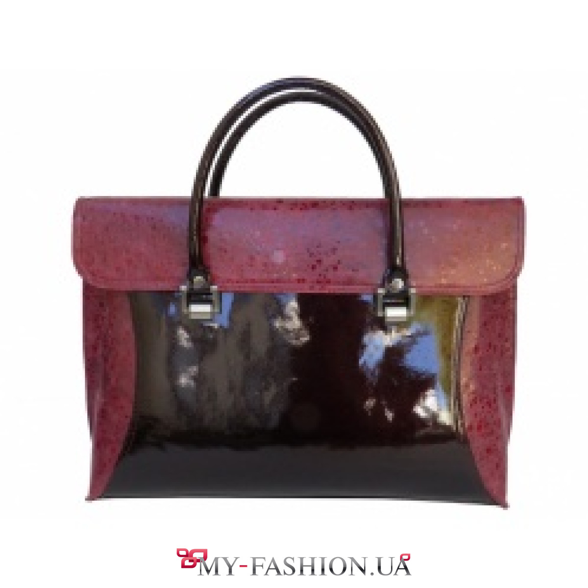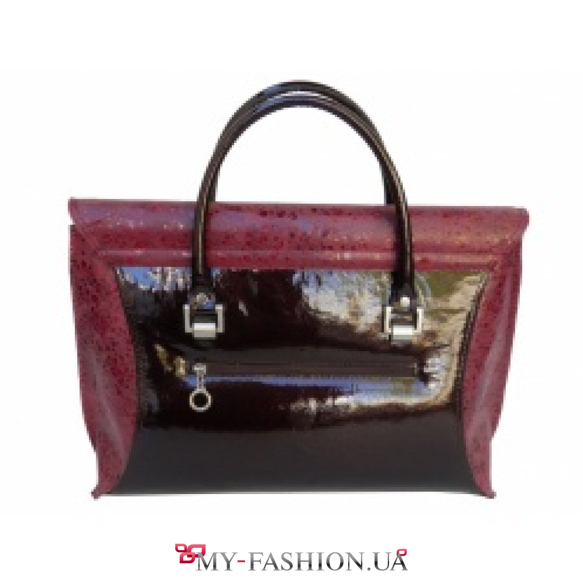 Сумка из натуральной лаковой и тисненой кожи . Внутри одно отделение, карман на молнии. На задней стенке карман на молнии. Данная модель сумки портфеля идеально подойдет для деловых встреч. Изделие специально разработано с делениями под документы.