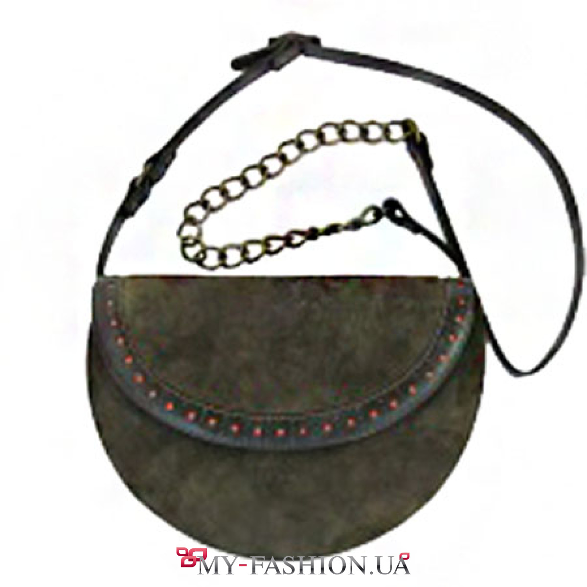 Классическая маленькая сумочка из высококачественной натуральной замши и кожи. Изделие на жёстком каркасе, внутри одно небольшое вместительное отделение и кармашек на молнии. Закрывается на магнитную кнопку. Тонкая длинная ручка с декоративной цепочкой позволяет носить сумку на плече. Эта модель - универсальное и незаменимое дополнение к любому вечернему платью. Будет выглядеть очень эффектно в сочетании с замшевыми туфлями. Материал: натуральная замша и кожа. Изделие ручной работы.