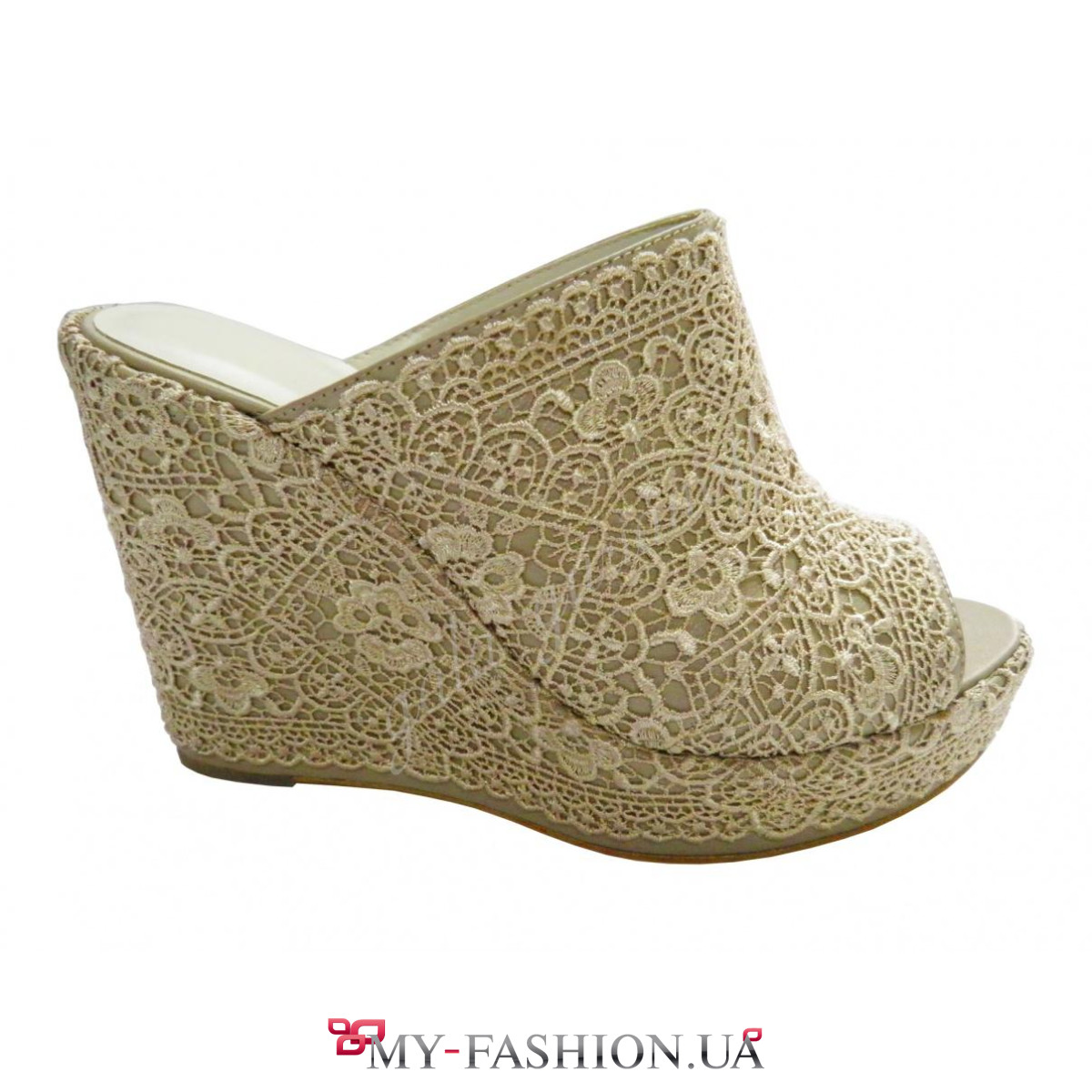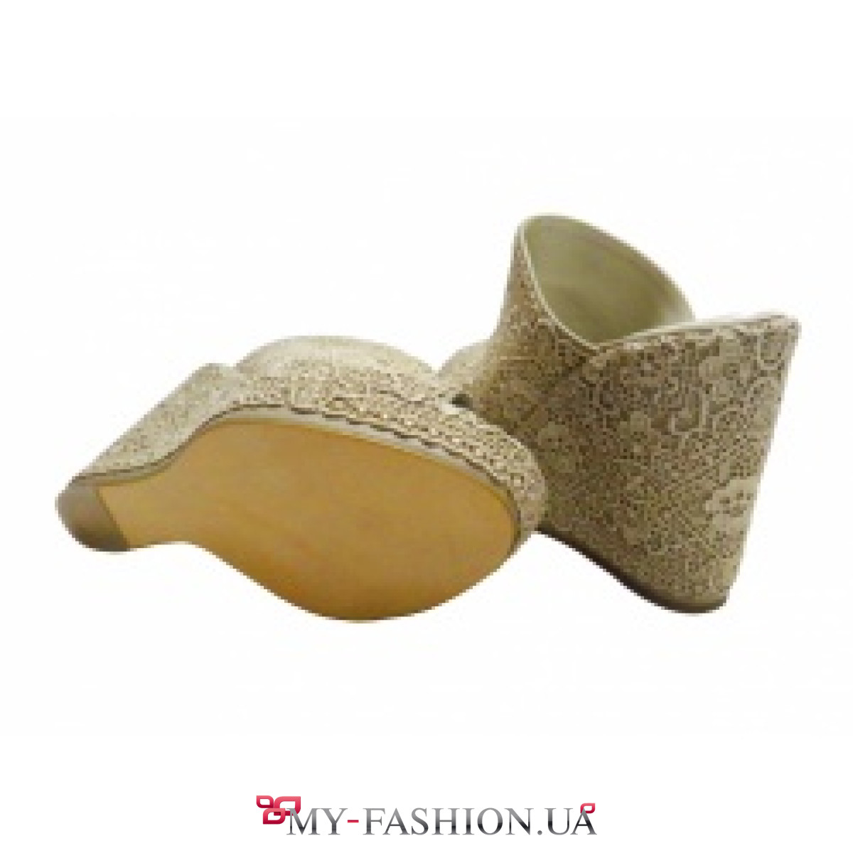 Красивая, элегантная летняя обувь. Сабо очень устойчивые и удобные, комфортная колодка позволит вам бегать в ним по городу, абсолютно не замечая высоты танкетки. Такая обувь прекрасно подчеркивает стройные ножки и хорошо сочетается с разнообразными элементами одежды: юбками, платьями, джинсами, шортами, туниками. Приятный бежевый цвет как нельзя лучше подходит для лета. Сабо изготовлены из высококачественных материалов. Высота платформы: 2,5 см, высота танкетки: 10 см.