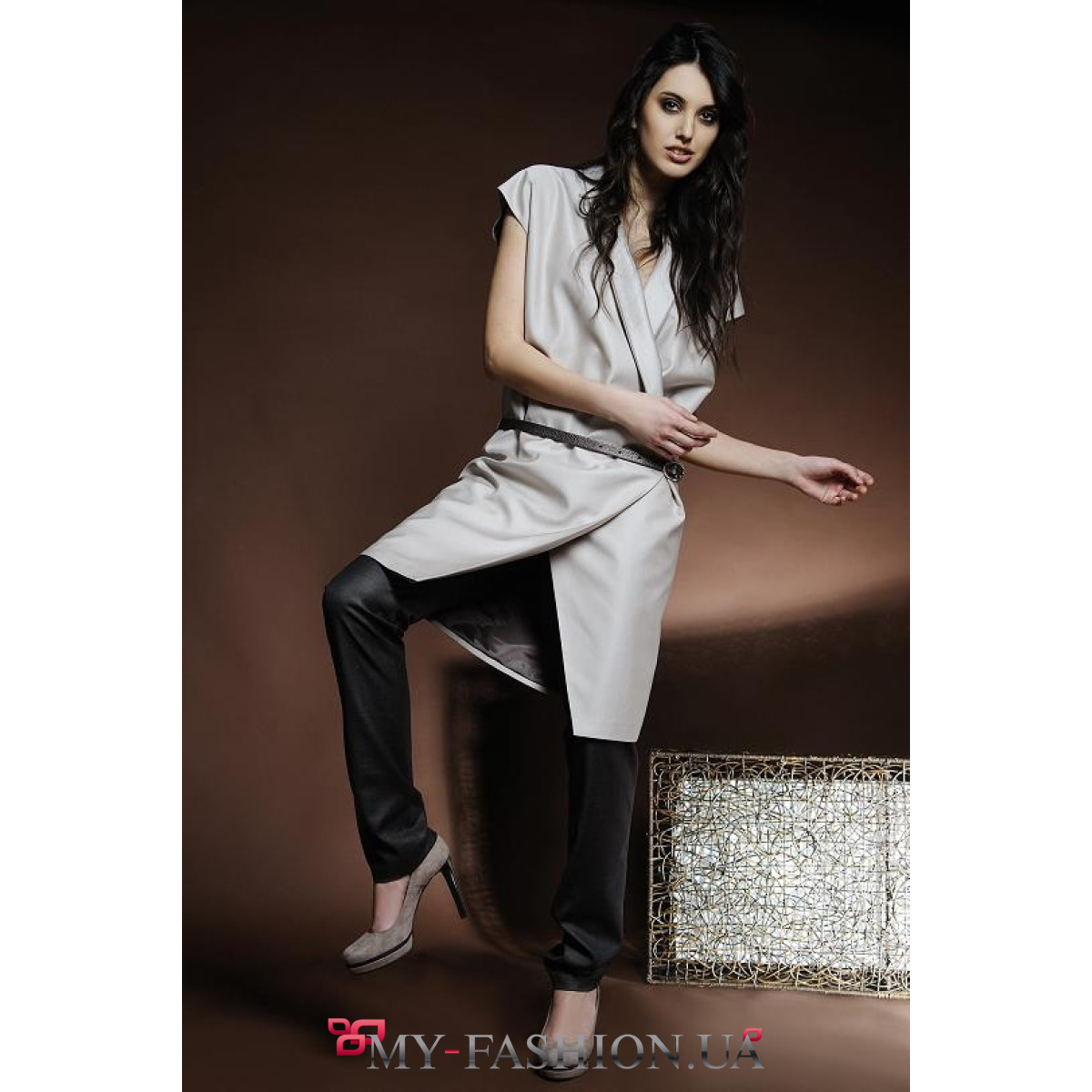 Оригинальная туника-жилет на запах. Изделие посажено на качественную подкладку для максимального комфорта в ношении. Талию рекомендуется выделять поясом. Интересный крой, плотная фактура ткани и свобода движений не оставят вас равнодушной. Представленная модель одинаково восхитительно выглядит в комплекте с платьями любых фасонов и со строгими брюками. Пояс не идёт в комплекте. Состав: 60% - хлопок, 37% - полиэстер, 3% - вискоза. Наличие размеров уточняйте. Можно изготовить на заказ в любом необходимом размере.