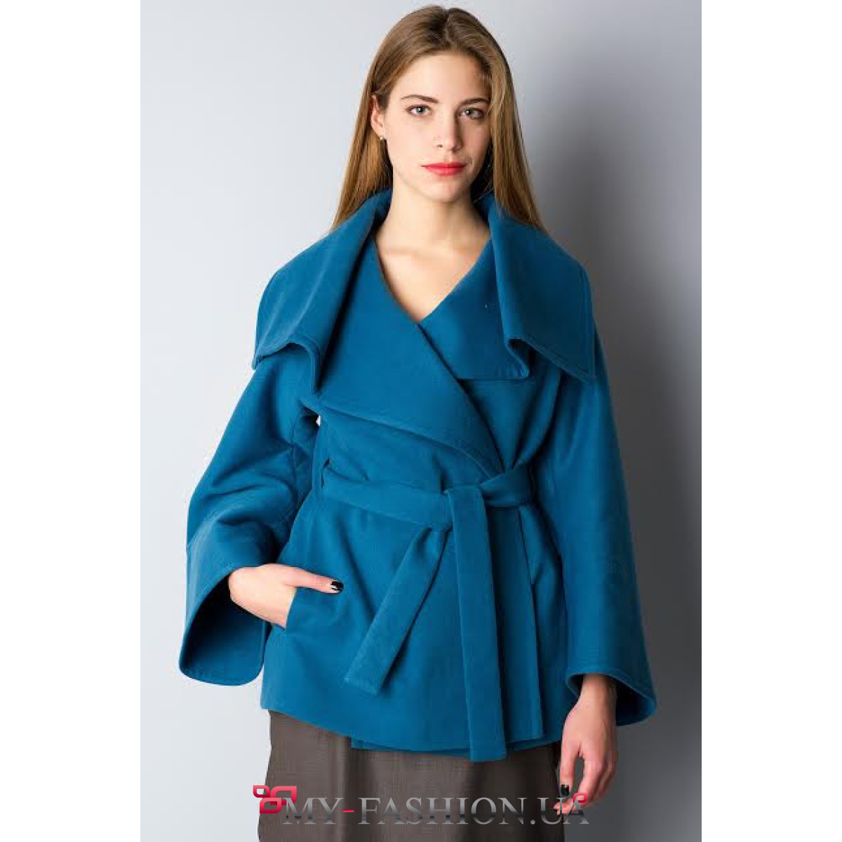 Красивое дизайнерское пальто-пончо насыщенного синего цвета - отличный вариант осенней накидки, которая будет замечательно сочетаться с любым образом. Изделие имеет широкие длинные рукава и большой воротник, который можно выложить волнами по вашему вкусу. Фиксируется с помощью пояса-завязки на линии талии. Состав: 60% - шерсть, 20% - вискоза, 20% - полиэстер. Наличие размеров уточняйте. Можно изготовить на заказ в любом необходимом размере.