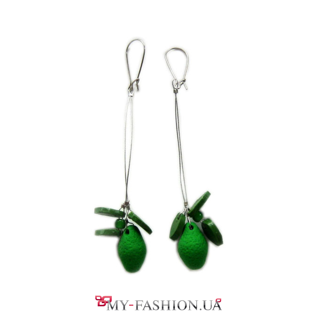 Серьги оригинальные "Лайм" от украинского дизайнера стильных аксессуаров Ярослава Косенко. Яркие длинные серьги из коллекция Тутти-Фрутти. Изготовлены серьги из пластики, стекла, металла. Представленная модель сережек отличное дополнение к летнему гардеробу.