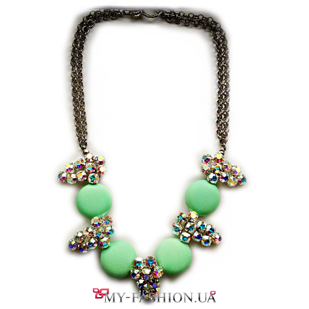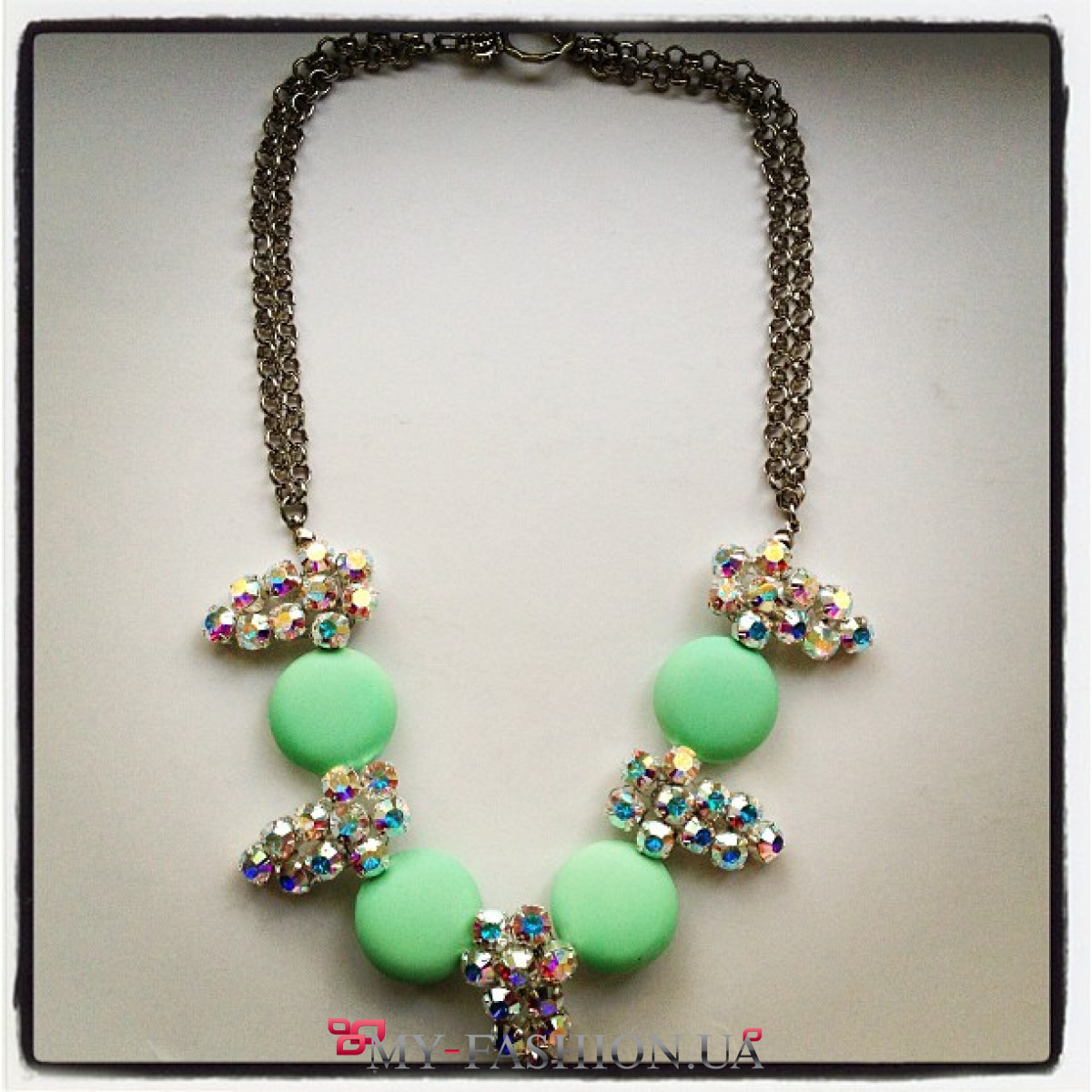 Восхитительное крупное, но в то же время нежное колье - прекрасный аксессуар, который хорошо дополнит и повседневный наряд, и праздничное длинное платье. Вы можете добавить это колье к любимому платью лаконичного кроя, чтобы превратить его в нарядное и торжественное. Изделие имеет удобную застёжку без регулировки длины. Отлично ложится в зону декольте. Такой аксессуар станет замечательным подарком для каждой девушки. Материалы: металл, кристаллы Swarovski, пластик. Изделие ручной работы.