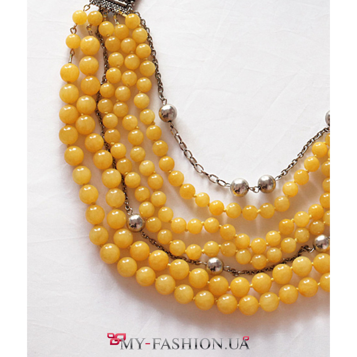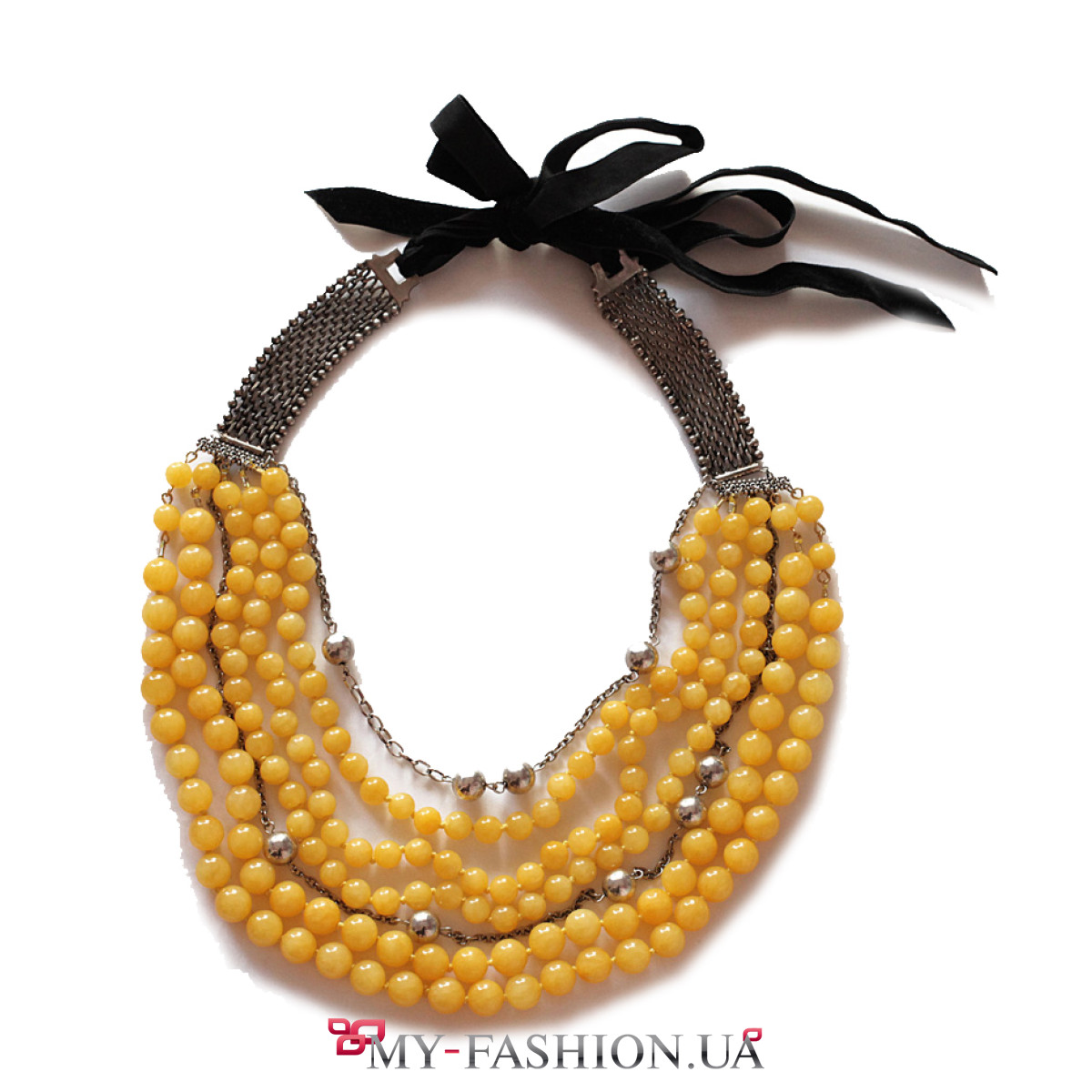 Восхитительное крупное, но в то же время нежное колье - прекрасный аксессуар, который хорошо дополнит и повседневный наряд, и праздничное длинное платье. Вы можете добавить это колье к любимому платью лаконичного кроя, чтобы превратить его в нарядное и торжественное. Изделие имеет удобную бархатную ленту для фиксации желаемой длины. Отлично ложится в зону декольте. Такой аксессуар станет замечательным подарком для каждой девушки. Материалы: бусины, металл, бархатная лента. Изделие ручной работы.