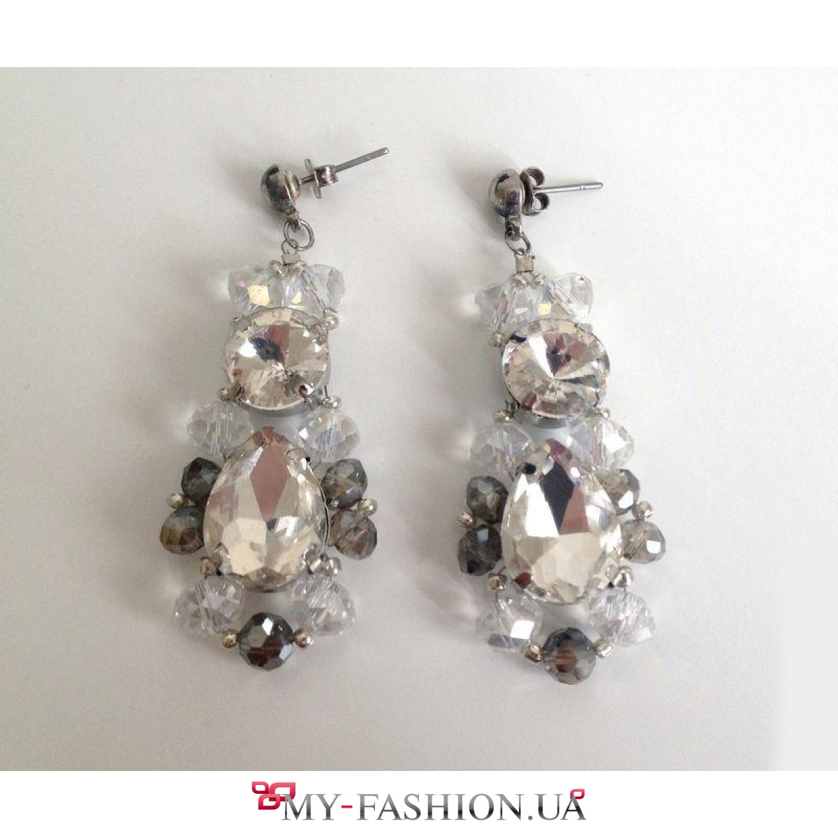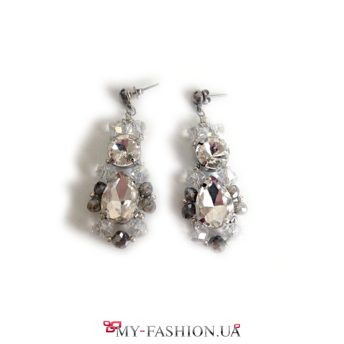 Восхитительные крупные серёжки - прекрасный аксессуар, который идеально дополнит и коктейльное, и длинное вечернее платье. Такое украшение станет замечательным подарком для каждой девушки, ведь при выборе серёжек невозможно прогадать с размером или посадкой по фигуре. При индивидуальном заказе вы можете обсудить с дизайнером желаемый цвет серёжек и даже немного их видоизменить по собственному вкусу. Материалы: чешское стекло, стразы, бисер. Полностью ручная работа.