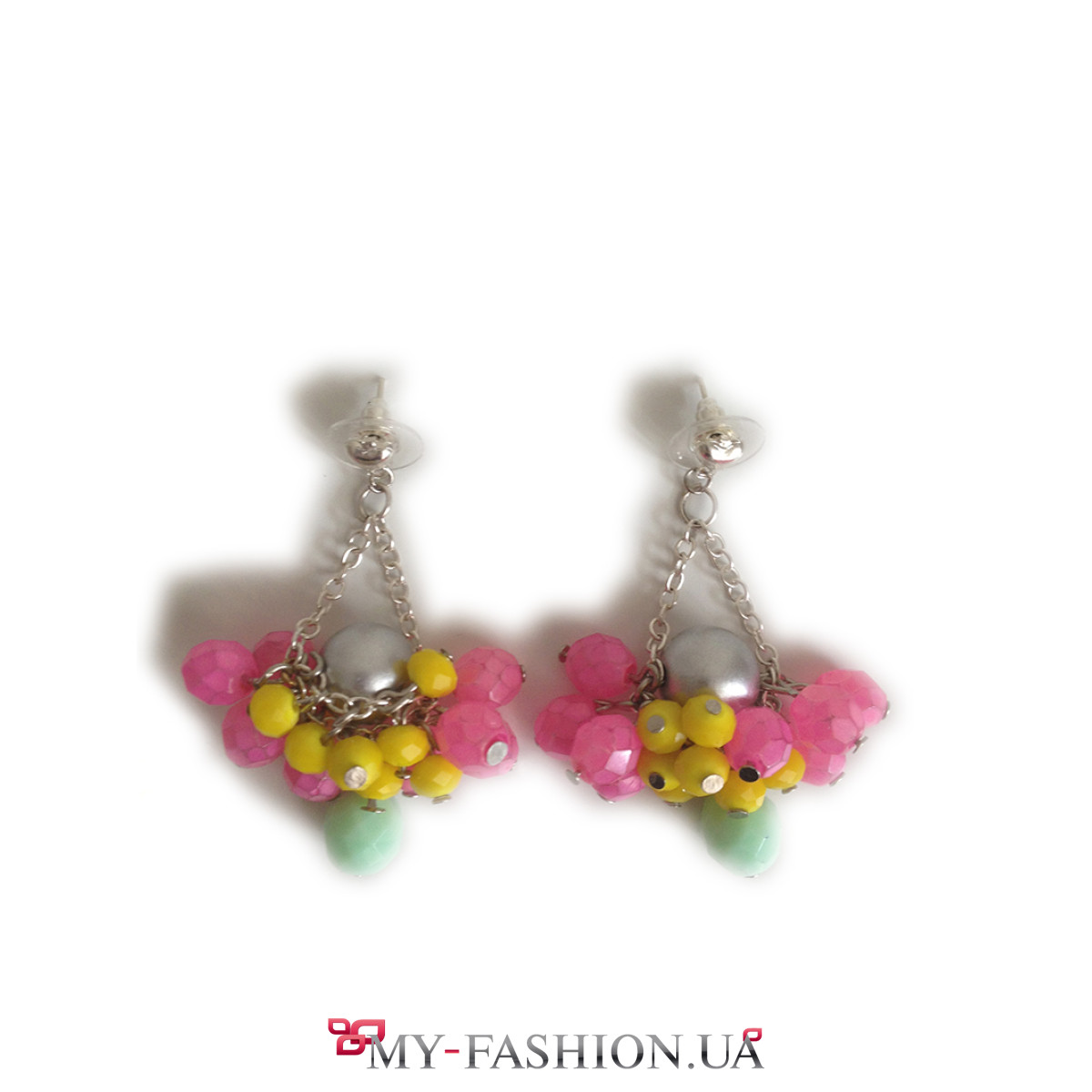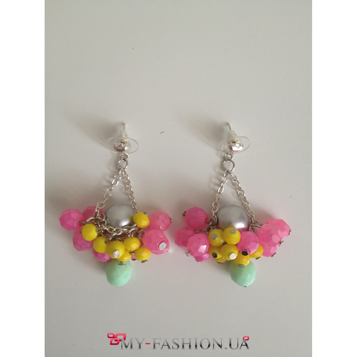 Очаровательные, нежные и изящные серёжки - прекрасный аксессуар, который идеально дополнит и коктейльное, и длинное вечернее платье. Такое украшение станет замечательным подарком для каждой девушки, ведь при выборе серёжек невозможно прогадать с размером или посадкой по фигуре. При индивидуальном заказе вы можете обсудить с дизайнером желаемый цвет серёжек и даже немного их видоизменить по собственному вкусу. Материалы: чешское стекло. Полностью ручная работа.