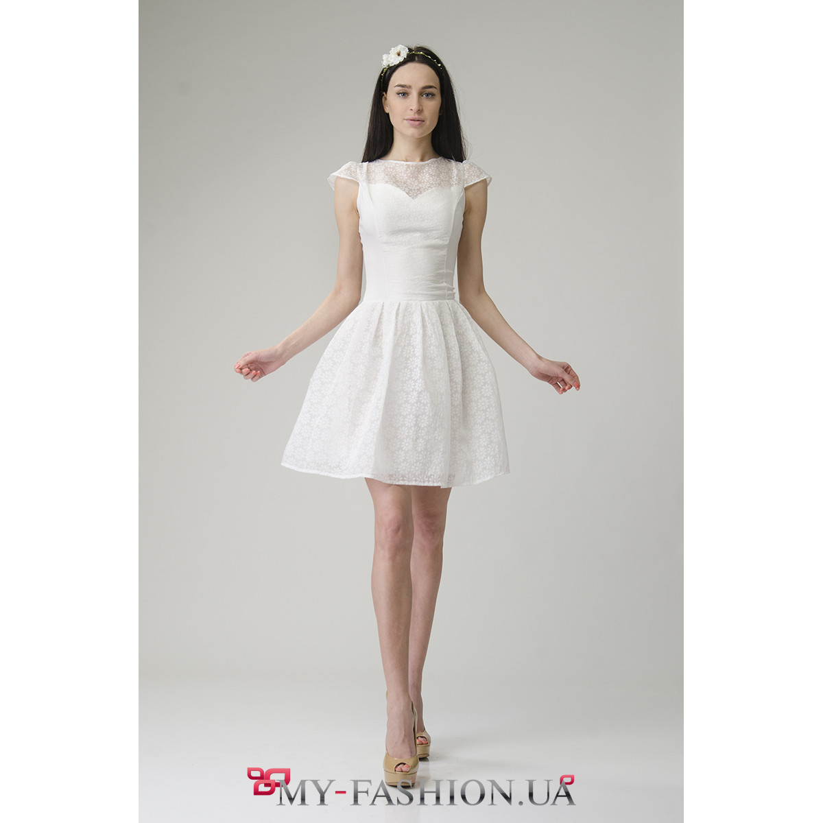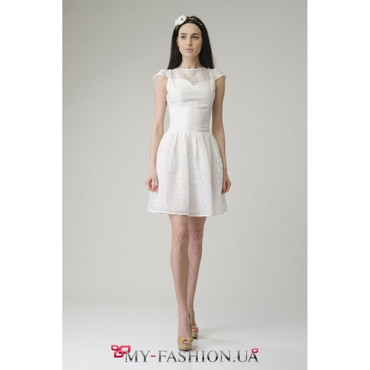 Восхитительное платье с короткими рукавами, идеально посаженное по фигуре. Изделие приятного белого цвета с белым цветочным узором. Модель отлично подходит и для повседневного ношения в жаркую погоду, и для праздников в кругу друзей. Состав: вискоза. Наличие размеров уточняйте. Можно изготовить на заказ в любом необходимом размере. Для завершения неповторимого летнего образа советуем выбрать дизайнерские серьги из летней коллекции в дополнение к платью.
