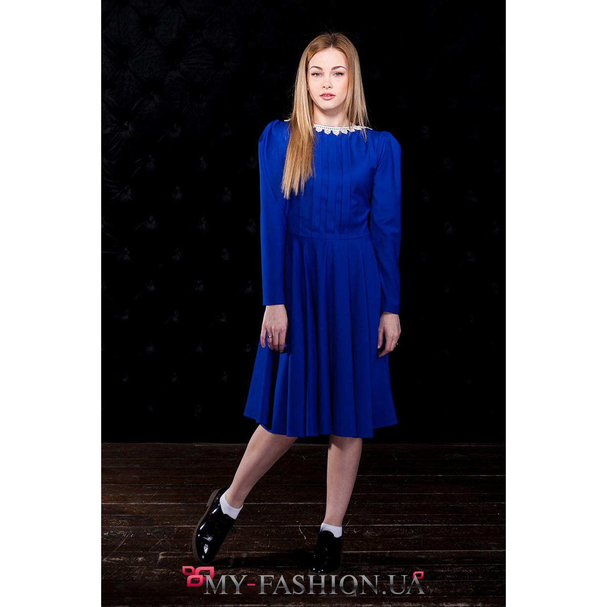 Привлекательное яркое платье, выполненное в сдержанном аристократичном стиле, прекрасно подходит и для торжественных мероприятий, и для праздников в кругу друзей. Полочка украшена встречными складами, воротник отделан белым тонким кружевом. Плечевая область длинного рукава украшена аккуратной сборкой. Сочетайте с классическими кожаными сумками. Материал: хлопковое полотно. Наличие размеров уточняйте. Можно изготовить на заказ в любом необходимом размере.