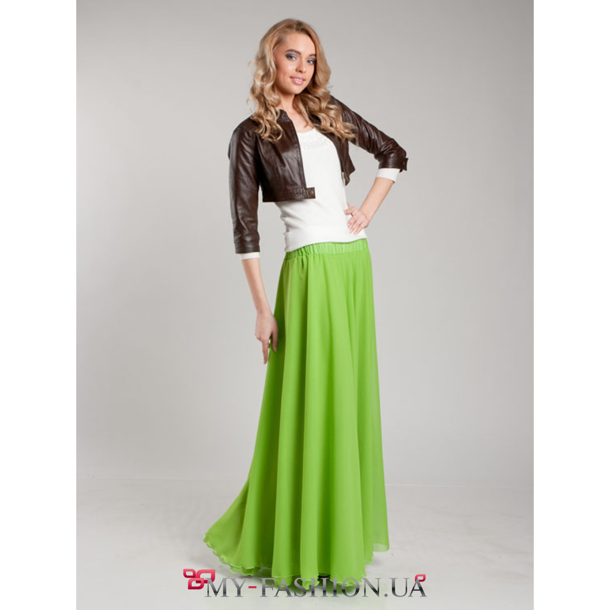 Длинная двухслойная юбка цвета лайма купить в Киеве. Яркая юбка в пол выполнена из шифона - замечательный выбор на лето. Юбка на резинке, что обеспечивает 100% отличную посадку. Размер юбки: S/L, длина 105см. Состав ткани: полиэстер с вискозой. Красивые коктейльные платья Вы посмотрите в главной категории этого сайта.