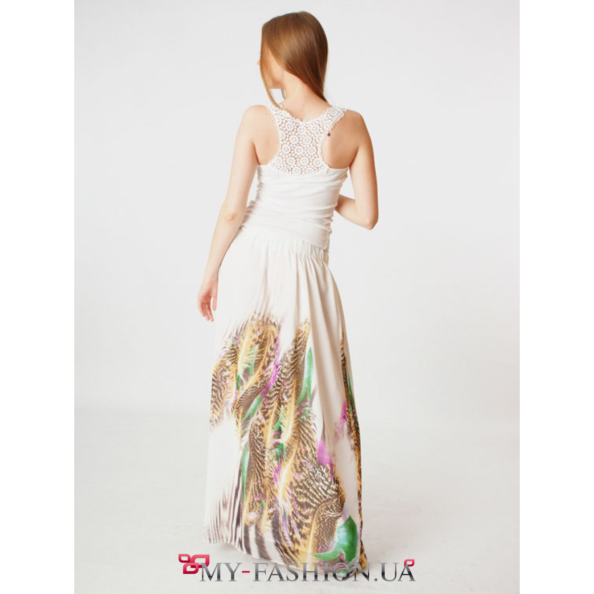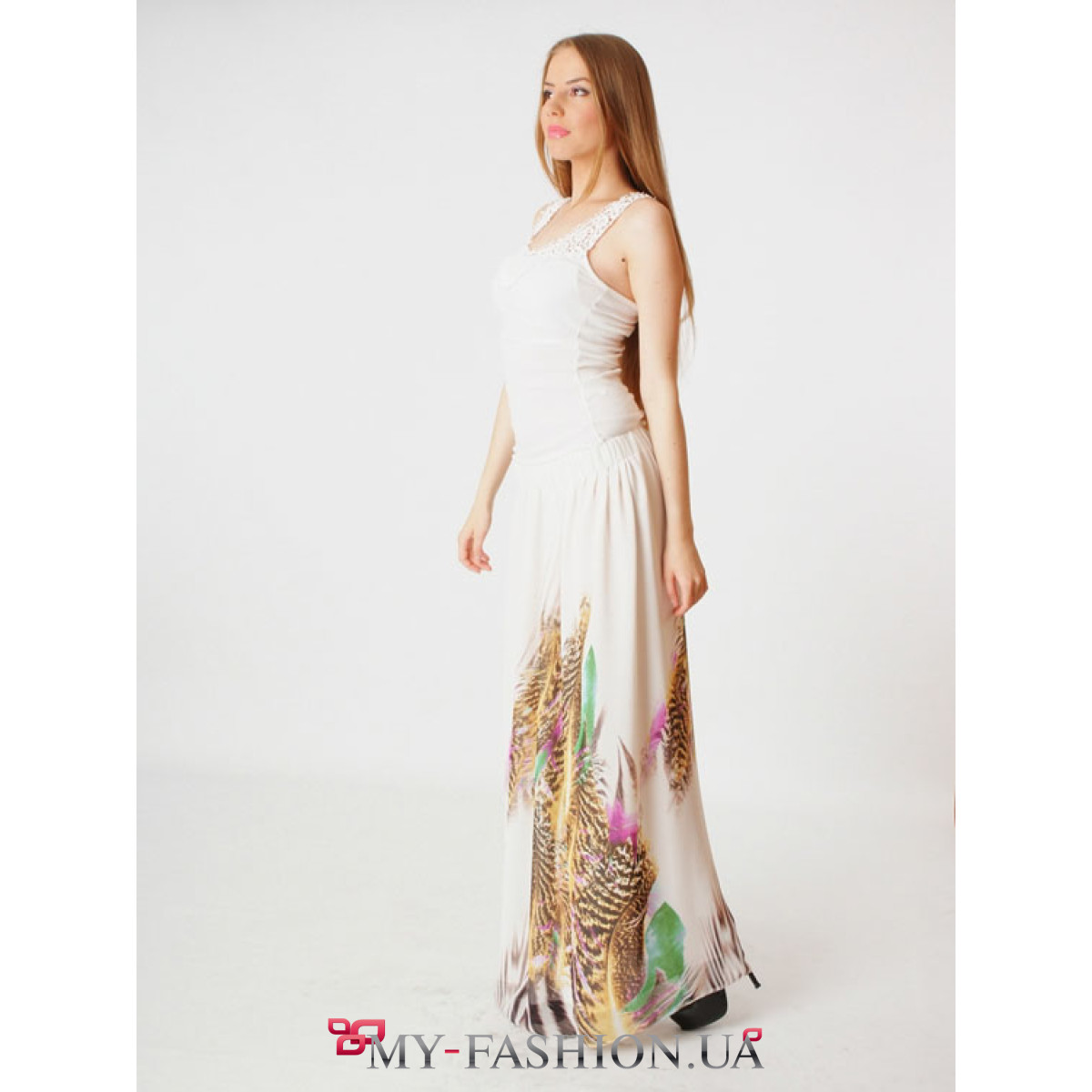 Длинная юбка купить Украина. Юбка наполнена теплом и радостью наступивших летних дней. Продлите ваши воспоминания о теплом песочном береге и ярком солнышке, купив представленную модель модной юбки в пол. Юбка изготовлена из тонкого, струящегося принтованого шифона на белой подкладке. Длинна модной юбки в пол сезона 2020-2021 составляет 106см. Состав: шифон. Изысканные вечерние платья Вы найдёте в основной категории этого интернет магазина.