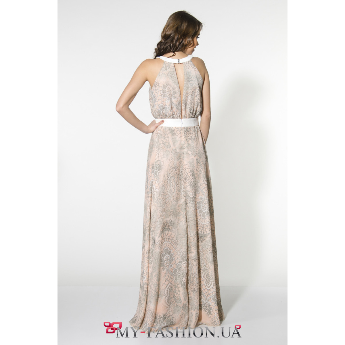Длинное шифоновое платье создано для роскошных девушек с тонким чувством вкуса. Основа изготовлена из тонкого шифона, изделие на подкладке, не просвечивается. Юбка-солнце не препятствует движениям. Вставки на полочке выполнены из лёгкого струящегося трикотажа, который отлично оттеняет основной цвет. Состав: 30% - вискоза, 70% - полиэстер. Параметры модели: 87х60х89, рост - 175 см. Размер одежды на модели: S. Можно изготовить на заказ в любом необходимом размере.