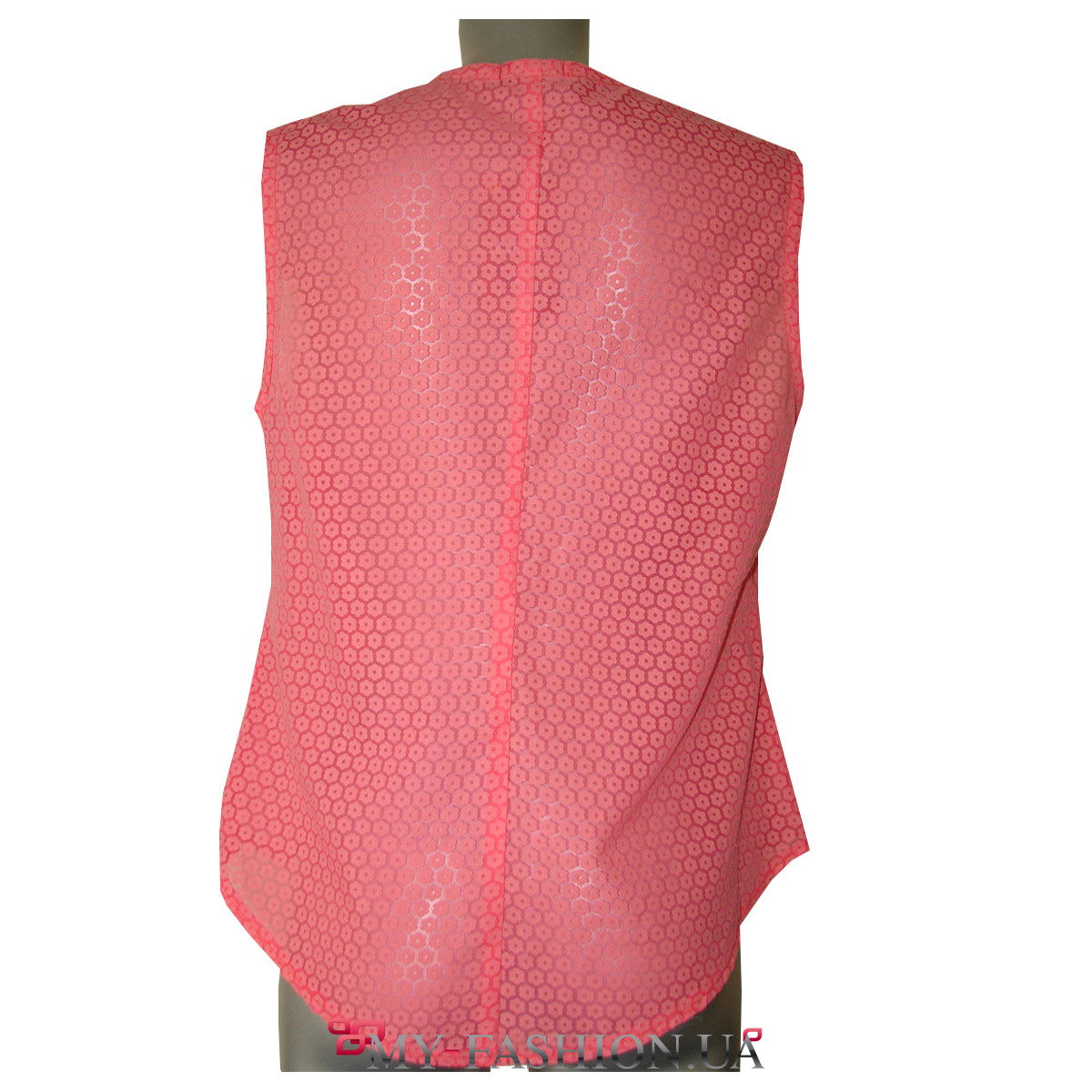 Красивая блуза из натуральной хлопковой ткани просто незаменима в летнюю жару. Изделие прямого силуэта, отлично смотрится в любом размере и подходит всем типам фигуры. Блуза без рукавов, вырез горловины полукруглый, неглубокий. Полочка украшена длинным декоративным жабо и красивой аккуратной вставкой по центру. Застёгивается на пуговицу на затылке. Изделие не требует дополнительных аксессуаров. Материал: хлопок. В наличии размеры 52, 54, 56.