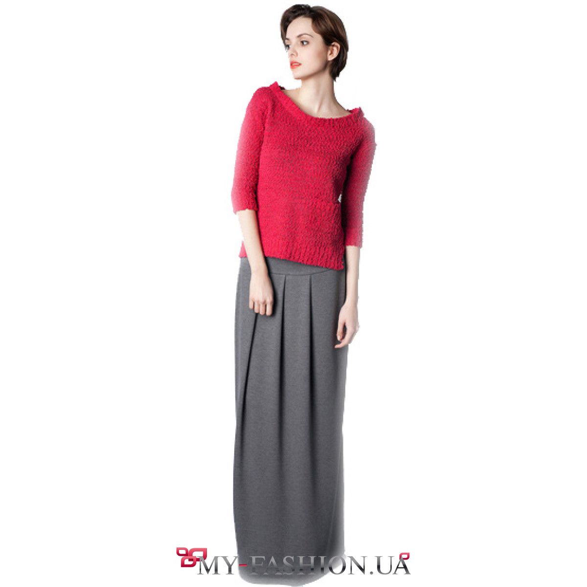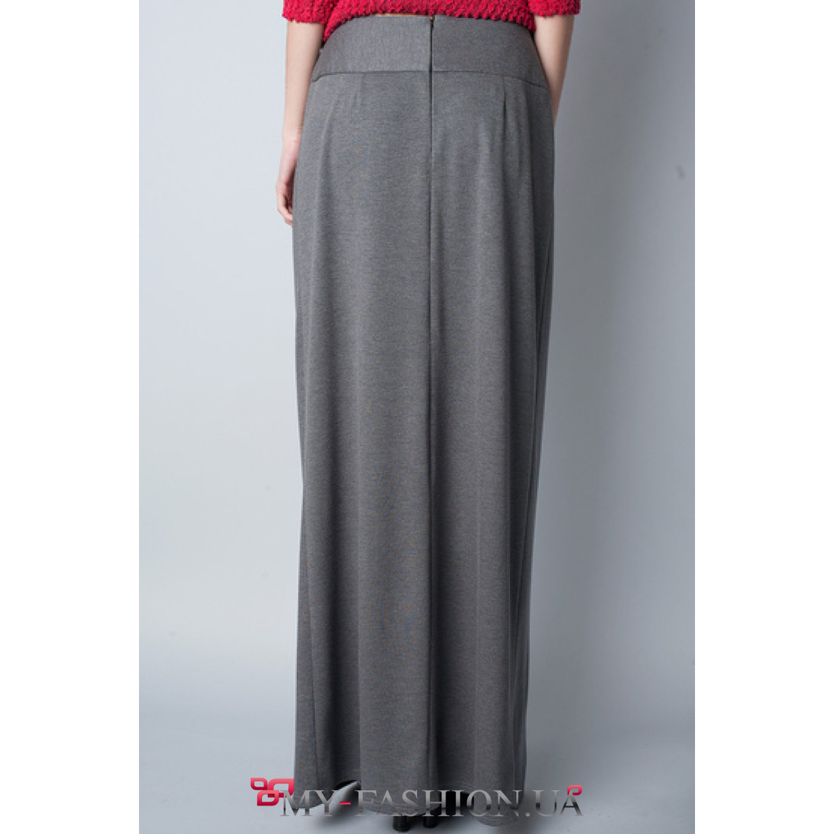 Чёрная трикотажная юбка выглядит просто превосходно. Плотный трикотаж и глубокие склады спереди помогут своей обладательнице создать волнующий образ. Юбочка тёплая, длинная, модная, удобная, а её главное преимущество - доступная цена. Изделие садится немного ниже линии талии, имеет пояс-кокетку и потайную молнию в боковом шве. Носите юбку с облегающим верхом (например, с модными боди) и дополняйте образ стильными пиджаками. Состав: шерсть, вискоза. В наличии размеры 44, 46, 48, 50.