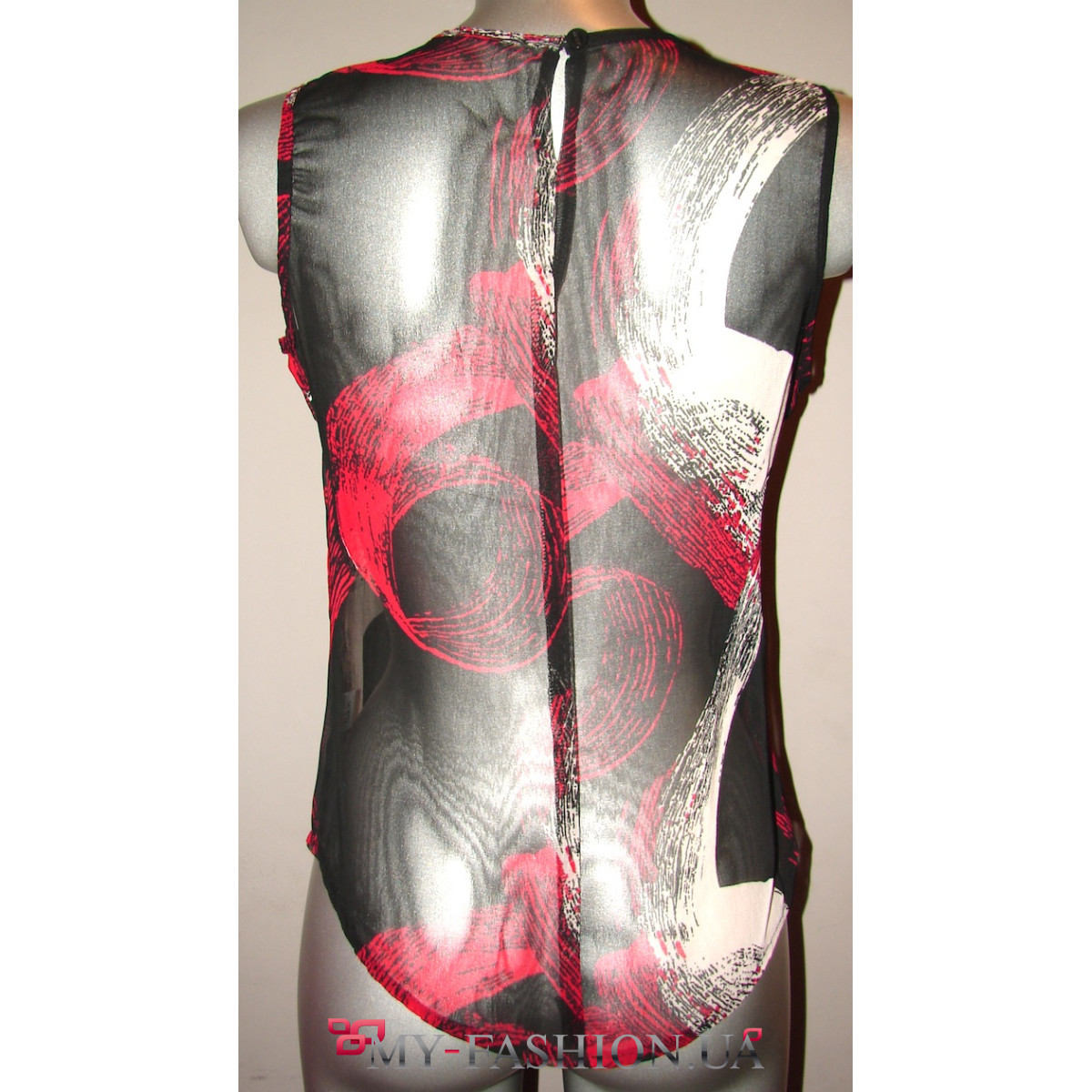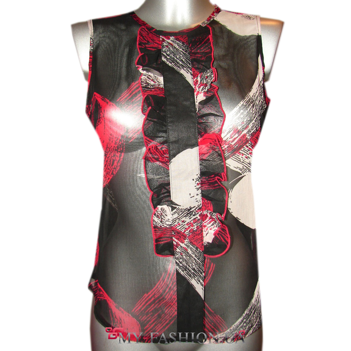 Универсальная летняя блуза из лёгкого прозрачного шифона на натуральной основе станет незаменимым нарядом в жаркую погоду. Изделие без рукавов, с неглубокой круглой горловиной. Все срезы тщательно обработаны кантом. Такая блуза будет замечательно выглядеть на стройных девушках, а также отлично скроет недостатки фигуры больших размеров. Сочетается как с юбками, так и с брюками. Материал: шёлк-шифон. В наличии размеры 44 и 46. Можно изготовить на заказ в любом необходимом размере.