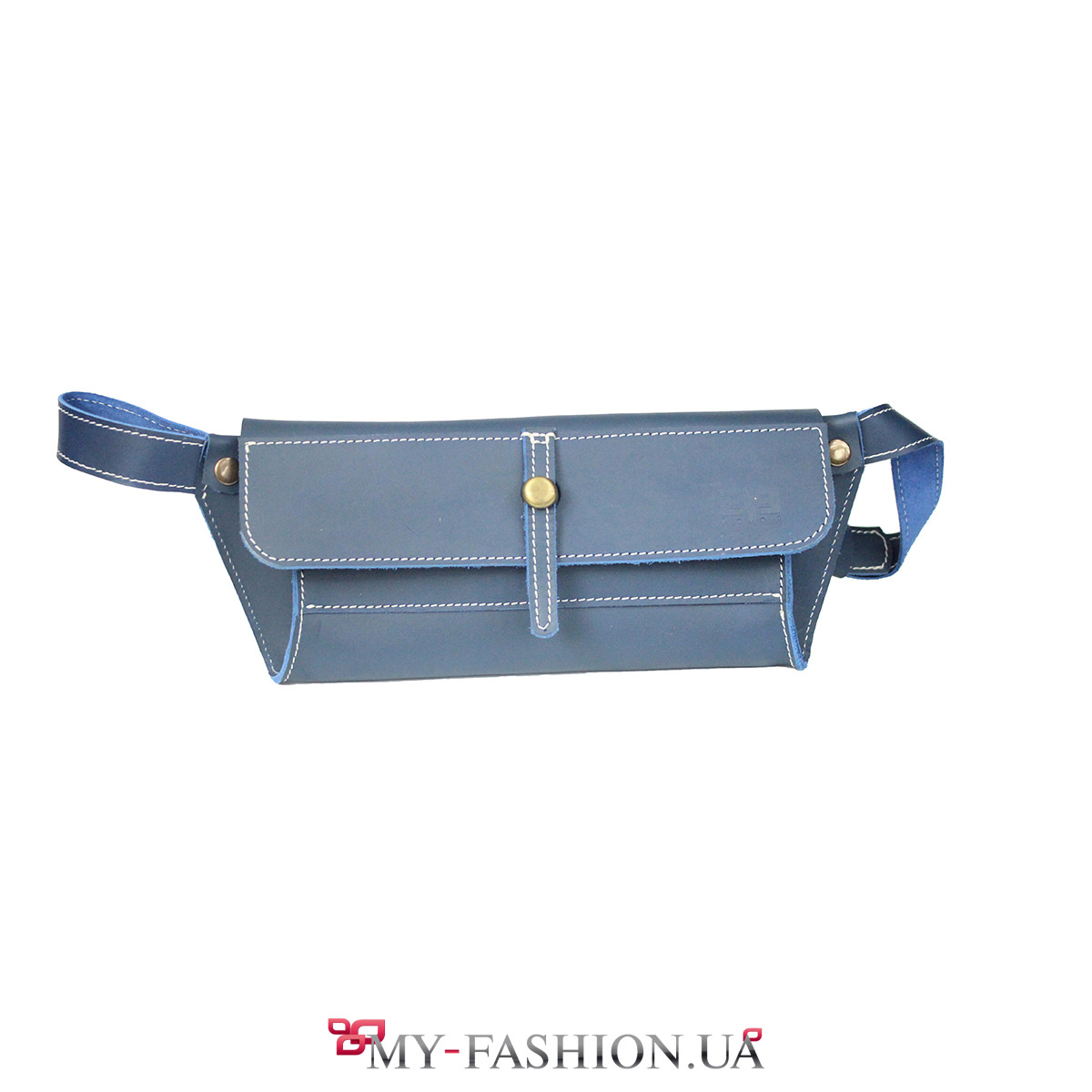 Поясная сумка из натуральной кожи выполнена в молодёжном направлении с грубыми необработанными краями. Выглядит очень стильно и современно. Внутри одно большое отделение и карман. Изделие закрывается на фирменную застёжку-клапан. Очень удобна в ношении, поскольку оставляет ваши руки абсолютно свободными. Размеры: длина - 26 см, высота - 13 см. Пожалуйста, ознакомьтесь с представленной на фото палитрой возможных цветов изделия.