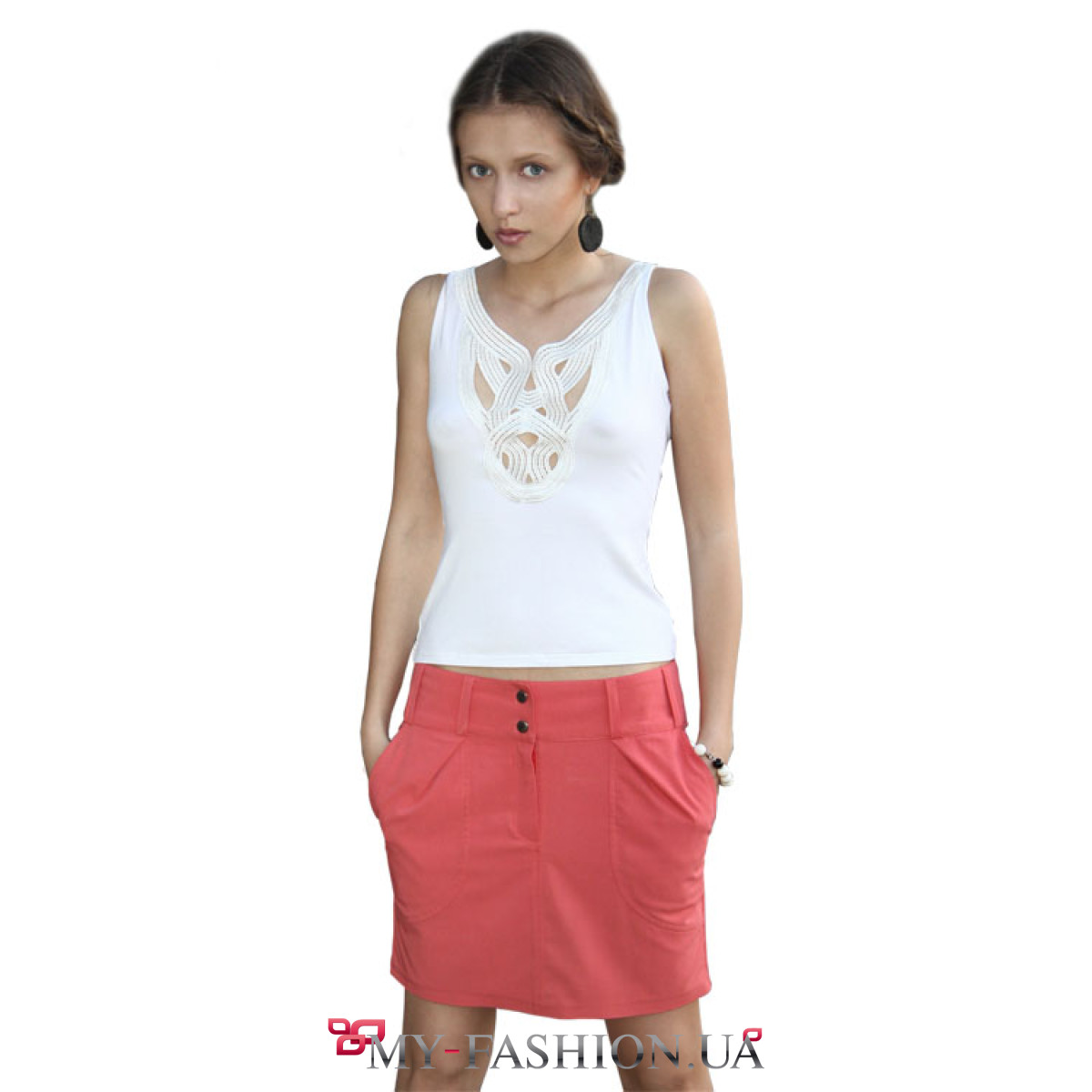 Белая майка с декоративной вставкой на груди от Malininy купить в Киеве с доставкой по Украине. Изысканная майка будет отлично смотреться как с джинсами, так и с юбкой. Изысканные коктейльные платья Вы найдёте в основной категории нашего интернет магазина.