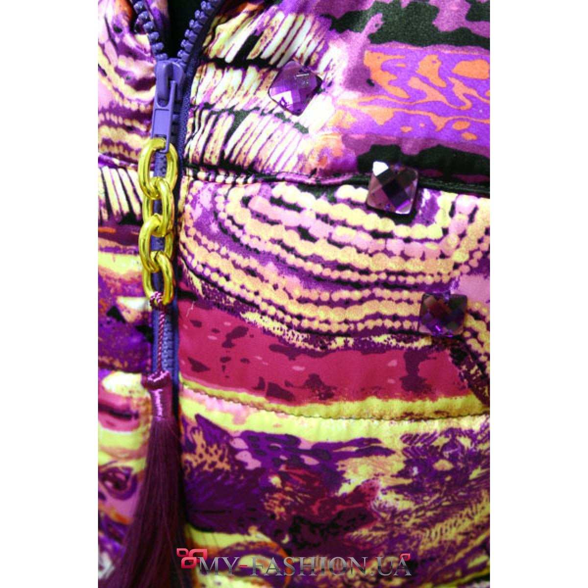 Жилетка модная дутая от украинского дизайнера Marikich. Эксклюзивная малиновая атласная жилетка с капюшоном, из шелковистого дизайнерского атласа с рисунком – имитацией драгоценностей, декорирована кристаллами. Жилетки имеется в наличии размером S. Материал атлас.