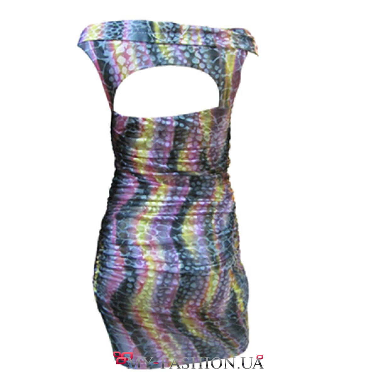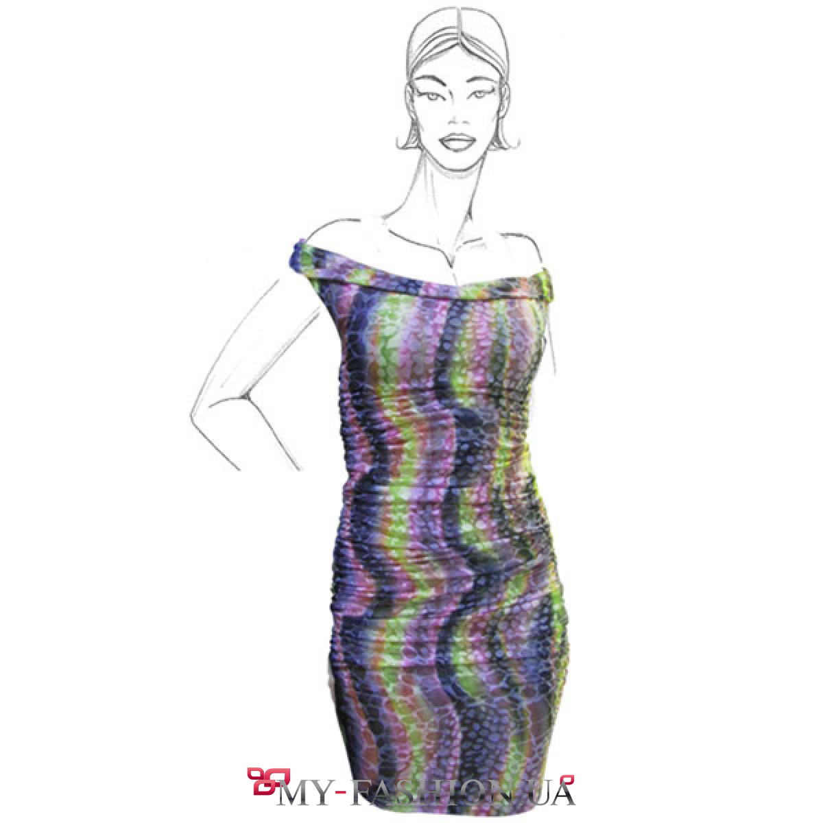Оригинальное трикотажное платье необыкновенной расцветки под экзотическую разноцветную чешую рептилии. Изделие приталенного кроя с открытыми плечами и милым вырезом на спинке. Броская, стильная и необычная - эта модель никого не оставит равнодушным. Для дополнения образа подберите яркие туфли и стильный клатч из натуральной кожи с рельефным тиснением. Материал: трикотаж. Наличие размеров уточняйте. Можно изготовить на заказ в любом необходимом размере.