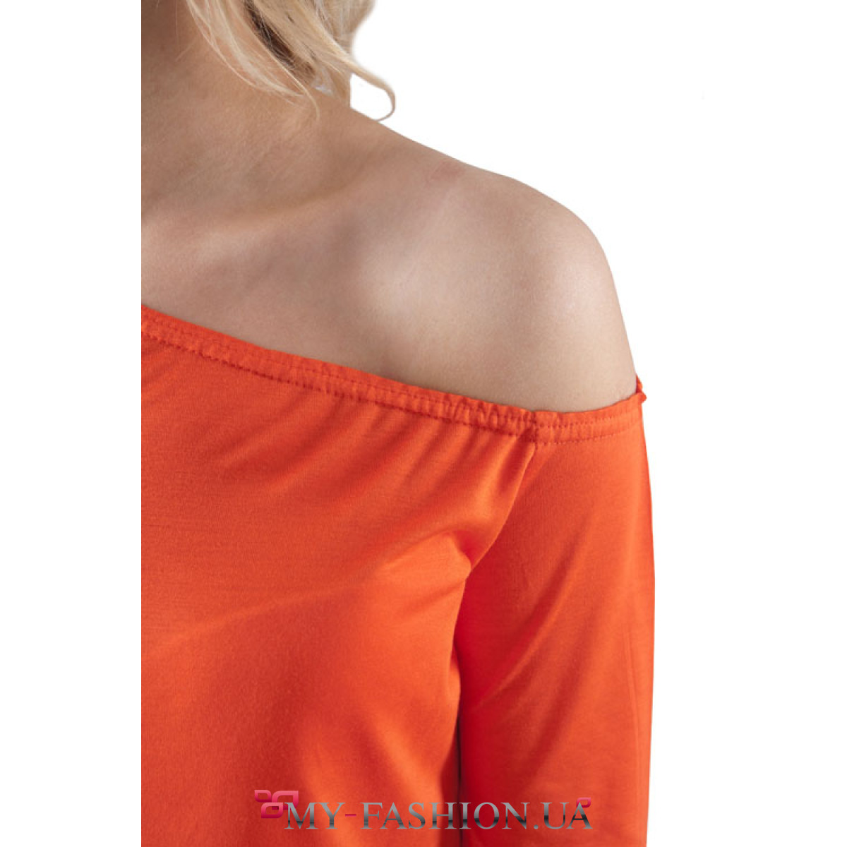 Ярко оранжевая блуза- туника из натурального трикотажа. Туника облегающего силуэта, с косым вырезом горловины, рукавами 3/4. Мы поможем вам купить тунику, подобрав правильный размер и обеспечив бесплатной доставкой по Украине. Туники имеются в наличии в размерах 34-38. Это очень красивые блузы- туники, невероятно удобные и практичные. Представленную модель туники вы легко можете совместить с трендовыми юбками этого сезона, а также с любимыми джинсами из вашего гардероба. Туника одинаково эффектно выглядит с обувью спортивного стиля на низком ходу и в сочетании с гламурными туфельками на каблуках. Красивые вечерние платья Вы увидите в этой категории этого интернет магазина.