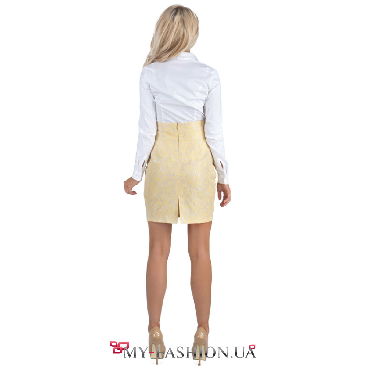 Красивая коротенькая юбочка с высоким поясом. Модная юбка будет великолепно смотреться с актуальными боди. Юбка изготовлена из жаккарда и имется в наличии в 44 размере. Юбка с вытачками идеально ложится по фигуре, застегивается на замочек молнию сзади. К светлой юбке подойдут контрастные аксессуары и стильные жакеты. Великолепное платье Киев вы посмотрите в этой категории этого интернет магазина.