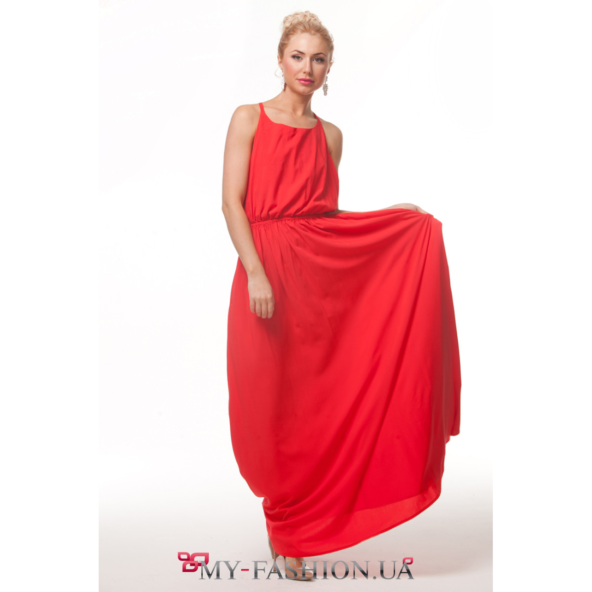 Простое и лёгкое платье-сарафан яркого насыщенного цвета никогда не выйдет из моды, ведь это очень удобная и элегантная вещь. Изделие на тонких бретелях с ровным вырезом горловины и открытой спинкой. Талия посажена на резинку, которая хорошо выделяет фигуру. Мягкие складки материи спадают красивыми волнами, украшая длинную юбку. Материал: штапель. Состав: 72% - вискоза, 28% - полиэстер. В наличии размер 34. Можно изготовить на заказ в любом размере.