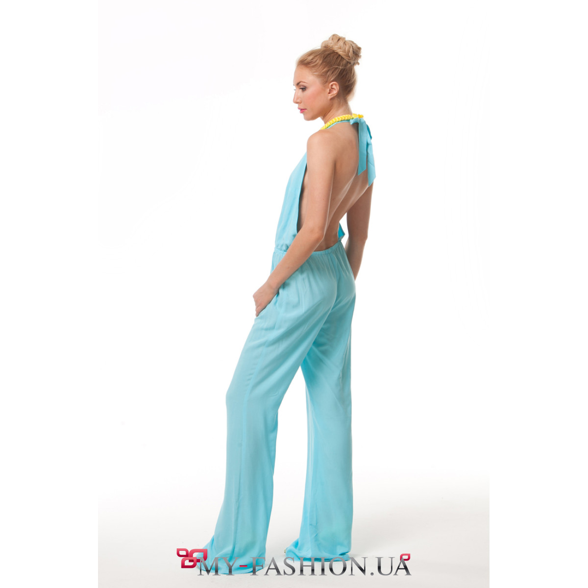 Лёгкий и удобный комбинезон из штапельной неэластичной ткани от украинского производителя. Изделие на тонких бретелях, вырез горловины скруглённый и неглубокий, спинка интригующе открыта. Свободный крой комбинезона отлично скрашивает несовершенства фигуры, заниженная линия талии создаёт нетипичный интересный силуэт. Длинные свободные штанины очень удобны в ношении. Комбинезон можно смело дополнять яркими аксессуарами. Материал: штапель. Доступен в разных размерах.