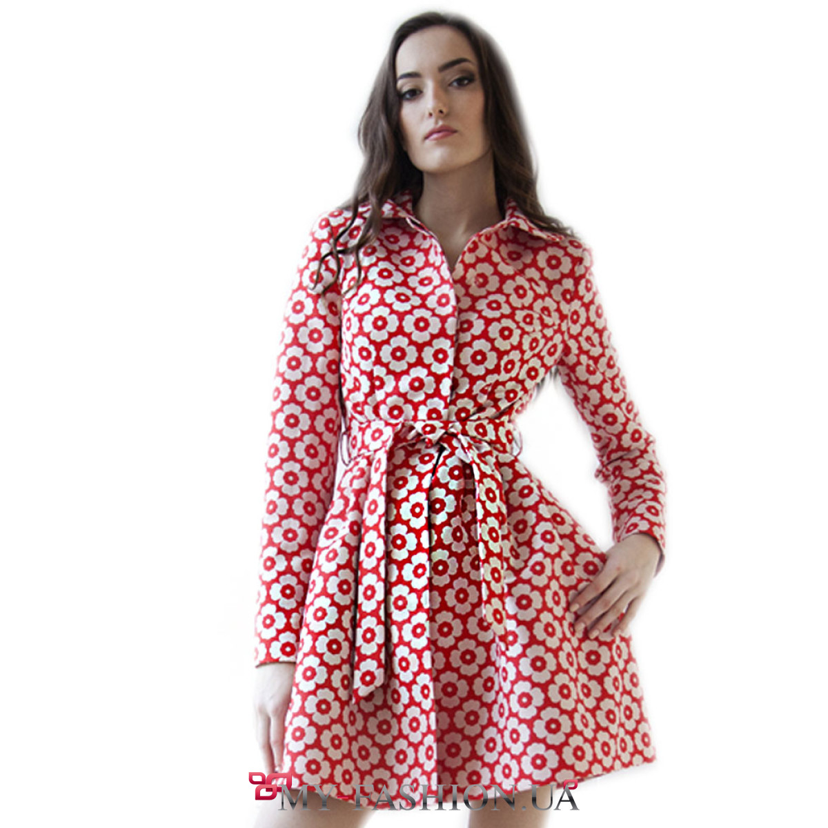 Восхитительный дизайнерский плащ, выполненный из высококачественного французского жаккарда. Яркая и женственная модель приталенного кроя станет украшением вашего гардероба. Плащ имеет небольшой воротник-стойку, длинные узкие рукава, потайную застёжку и удобный пояс-завязку на талии. Материал: жаккард. Состав: полиэстер. Наличие размеров уточняйте. Можно изготовить на заказ в любом необходимом размере. Эта модель также доступна в чёрно-белом варианте.