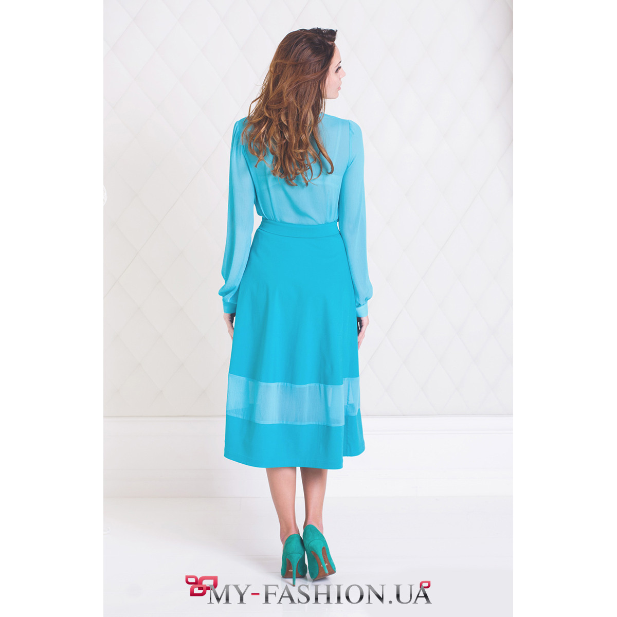 Красивая яркая юбка длиной до середины щиколотки. Благодаря поясу, прекрасно садится на талию и выгодно её подчеркивает. Изготовлена из однотонной материи яркого насыщенного цвета, по низу украшена широкой вставкой из шифона аналогичного оттенка. Эта юбка станет ярким акцентом в вашем незабываемом образе. Сочетайте с красивыми аксессуарами, верхом и обувью в тон. Состав юбки: хлопок - 60%, вискоза - 35%, эластан - 5%. Состав вставки: хлопок - 60%, вискоза - 40%. Доступные размеры: XS, S, M, L.