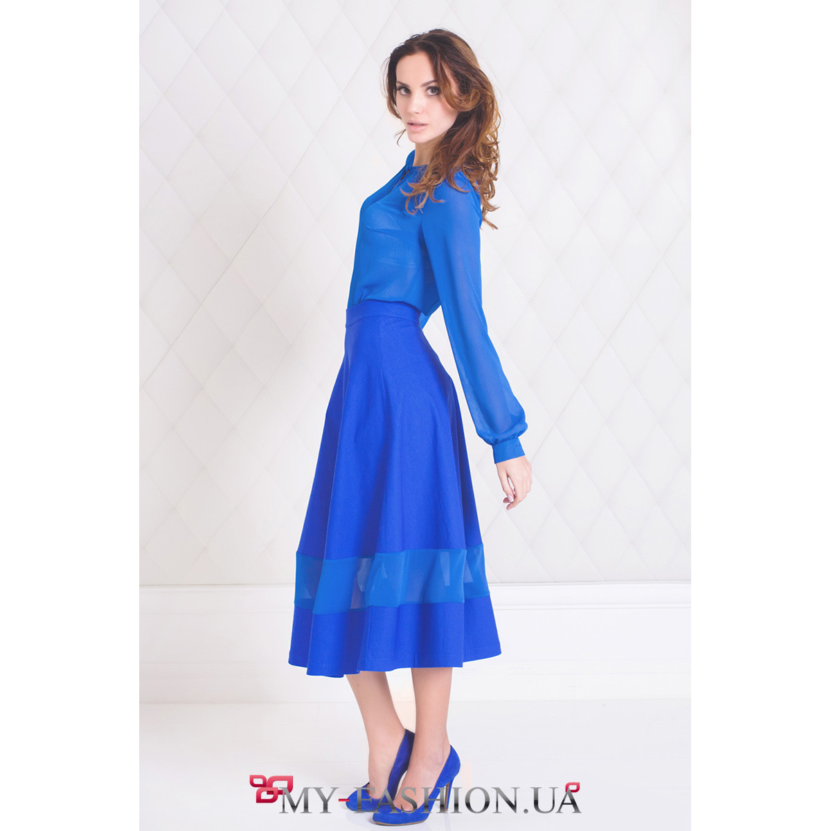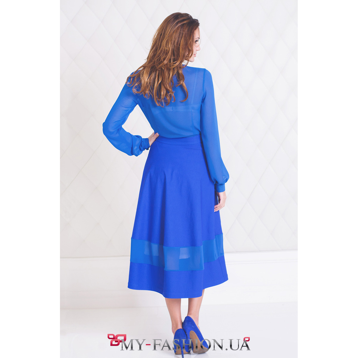 Красивая яркая юбка длиной до середины щиколотки. Благодаря поясу, прекрасно садится на талию и выгодно её подчеркивает. Изготовлена из однотонной материи яркого насыщенного цвета, по низу украшена широкой вставкой из шифона аналогичного оттенка. Эта юбка станет ярким акцентом в вашем незабываемом образе. Сочетайте с красивыми аксессуарами, верхом и обувью в тон. Состав юбки: хлопок - 60%, вискоза - 35%, эластан - 5%. Состав вставки: хлопок - 60%, вискоза - 40%. Доступные размеры: XS, S, M, L.