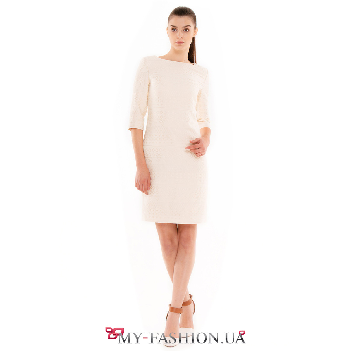Восхитительное нежное платье популярного цвета шампань. Изделие идеально облегает фигуру и создаёт хрупкий женственный образ. Платье невероятно комфортно в ношении, тёплая плотная ткань с приятной фактурой создаст ощущение неподдельного комфорта. Выполнено из материала с высоким содержанием натуральных волокон. Наличие размеров уточняйте. Можно изготовить на заказ в любом необходимом размере. К платью рекомендуем подобрать яркую сумку и стильные аксессуары.