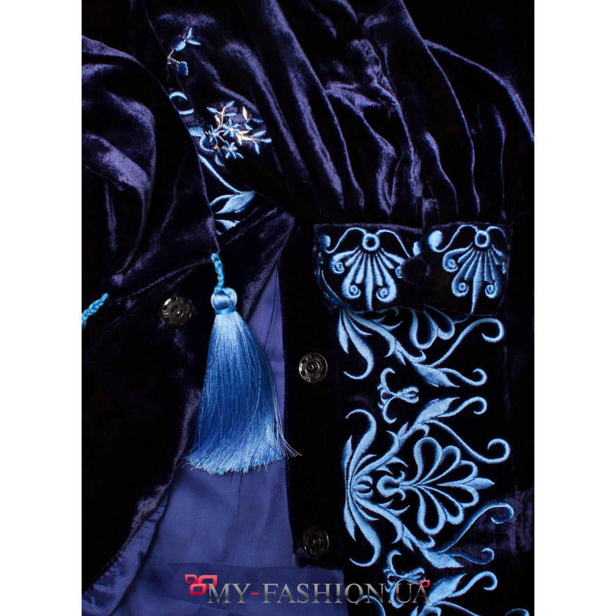 Изысканный бархат и богатая аутентичная вышивка - гармония стиля, воплощенная в платье "Дерево". На темно-синем бархате красуется символическая вышивка в холодных тонах. Так называемое "Дерево Жизни" - это украинский этнический обереговый знак, который имеет несколько значений: Мать-Природа, Женщина-Мать, олицетворение структуры мироздания. Цветы на Древе Жизни символизируют красоту и молодость, а птицы - это посланцы Духа Божия, предохраняющие семью. Длина - 130 см. В платье V-образная горловина и вытачки на груди. На планке - застежки-кнопки. Рукава выполнены в традиционной украинской технике "Пухлик". На рукавах - застежки-пуговицы. Вышивка сделана на промышленных японских вышивальных машинах качественными нитками, не линяют. Изделие сшит вручную нашими майстринями.Склад 100% шовк.Рекомендований уход за изделием: химчистка. Сделано в Украине. Необходимый размер вышивки обсуждается после оформления заказа. Избранное Вами изделие можно сшить по индивидуальным меркам и видоизменить крой, подобрать другой цвет ткани, и изменить цвет нитей. Также можем предложить выполнить вышивку другого орнамента или рисунка, избранного лично Вами. Любые индивидуальные изменения, в зависимости от сложности их выполнения, могут повлиять на конечную стоимость изделия. Данный аспект обсуждается с менеджером в процессе переговоров.