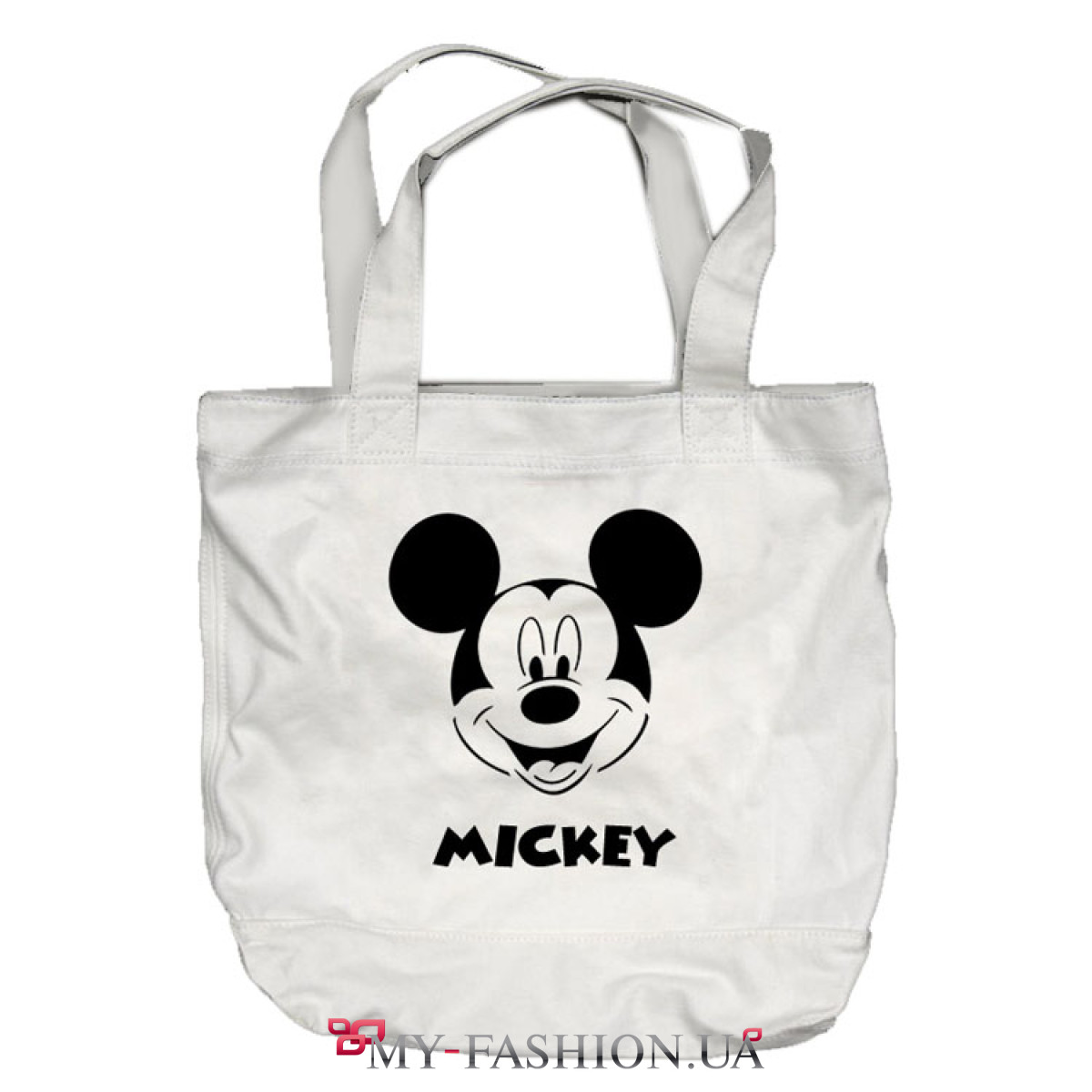 Купить молодежную сумку. Белая сумка с принтом "Микки Маус" забавная и яркая. Собираясь за покупками, возмите с собой стильную сумку из натурального хлопка- откажитесь от полиэтиленновых пакетов! Сумка отлично переносит стирку в машине автомат, а значит будет всегда чистой и опрятной. Великолепные вечерние платья Вы приобретете в основной категории нашего каталога.