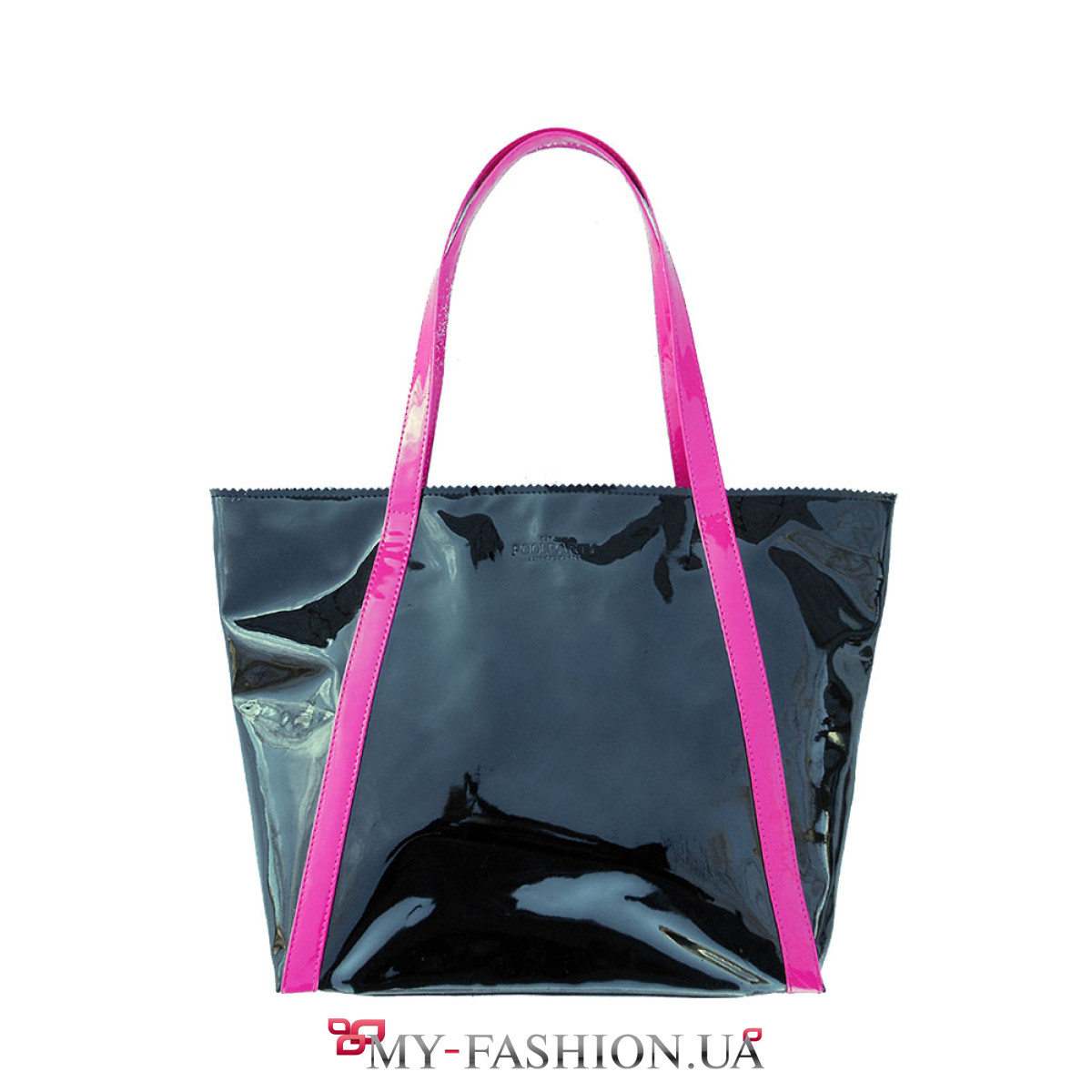 Стильная и вместительная яркая лаковая сумка станет прекрасным дополнением к современному и оригинальному образу. Изделие выполнено из лакового материала, который быстро набирает популярность среди молодёжи. Сумка декорирована розовыми тонкими лентами, которые плавно и эффектно переходят в ручки. Изделие на подкладке, внутри одно отделение и карман для мелочей. Застёгивается на надёжную металлическую молнию. Материал: лак. Подкладка: полиэстер.