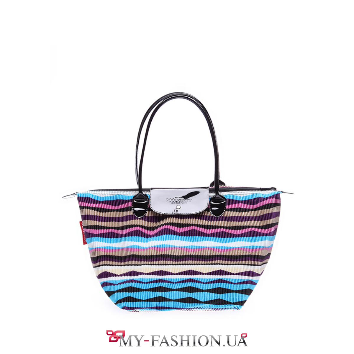 Очень красивая яркая вместительная сумка - идеальный летний вариант, который будет прекрасно сочетаться с любым купальником или другой пляжной одеждой. Изделие выполнено из текстиля, ручки и клапан - из искусственной кожи. Внутри одно крупное отделение и карман для мелочей. Закрывается на надёжную металлическую молнию. Размеры изделия: ширина - 42 см, высота - 34 см, высота с ручками - 50 см. Материал: текстиль. Состав: полиэстер, подкладка - нейлон. Изделие ручной работы.