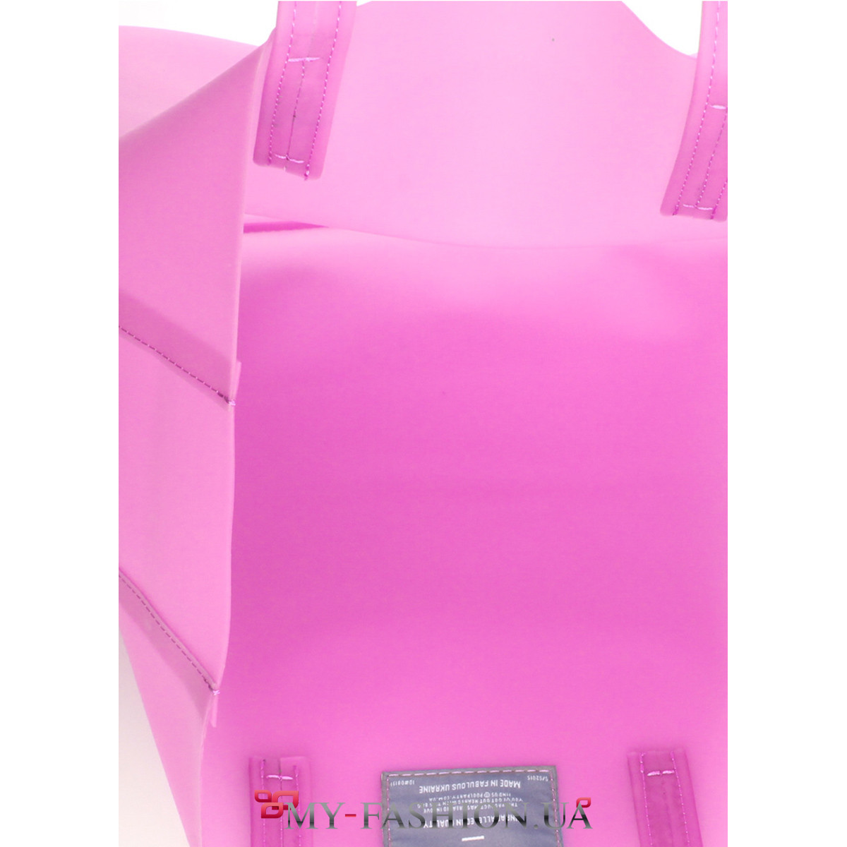 Оригинальная вместительная сумка, изготовленная из силикона, идеально подойдёт для стильных молодых девушек. Изделие полупрозрачное, благодаря чему буквально светится ярким цветом. Сумка подходит для повседневного ношения и морских прогулок. Внутри одно отделение, в которое свободно помещается ноутбук и папка для документов форматом А4. Сумка выглядит очень стильно и задорно, это изделие - идеальный вариант для летнего сезона. Материал: силикон ПВХ. Размеры: 42х40 см, высота с ручками - 55 см.