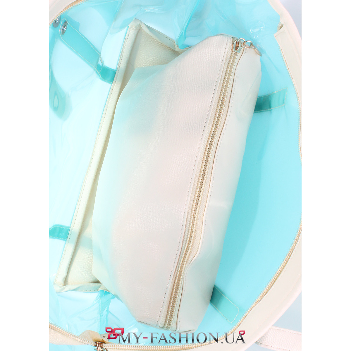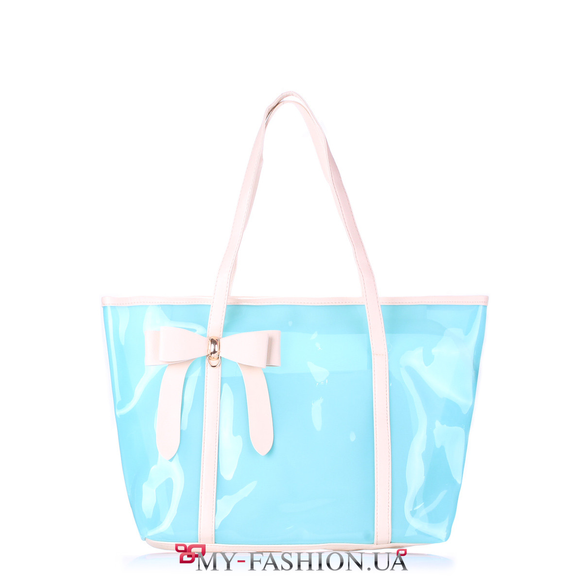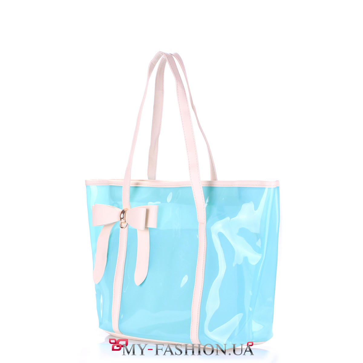 Стильная вместительная сумка, изготовленная из ПВХ, прекрасно дополнит ваш повседневный наряд. Изделие декорировано женственным бантиком. Многофункциональная сумка на каждый день. Позволяет вмещать большое количество личных вещей, при этом прекрасно сохраняя свою форму. Идеально подходит для туристических летних поездок по новым городам и странам. Изделие имеет одно отделение, внутренний кошелек, жесткое дно, металлическую застежку-молнию. Размеры: ширина - 46 см, высота - 30 см, глубина - 12 см, высота с ручками - 48 см.