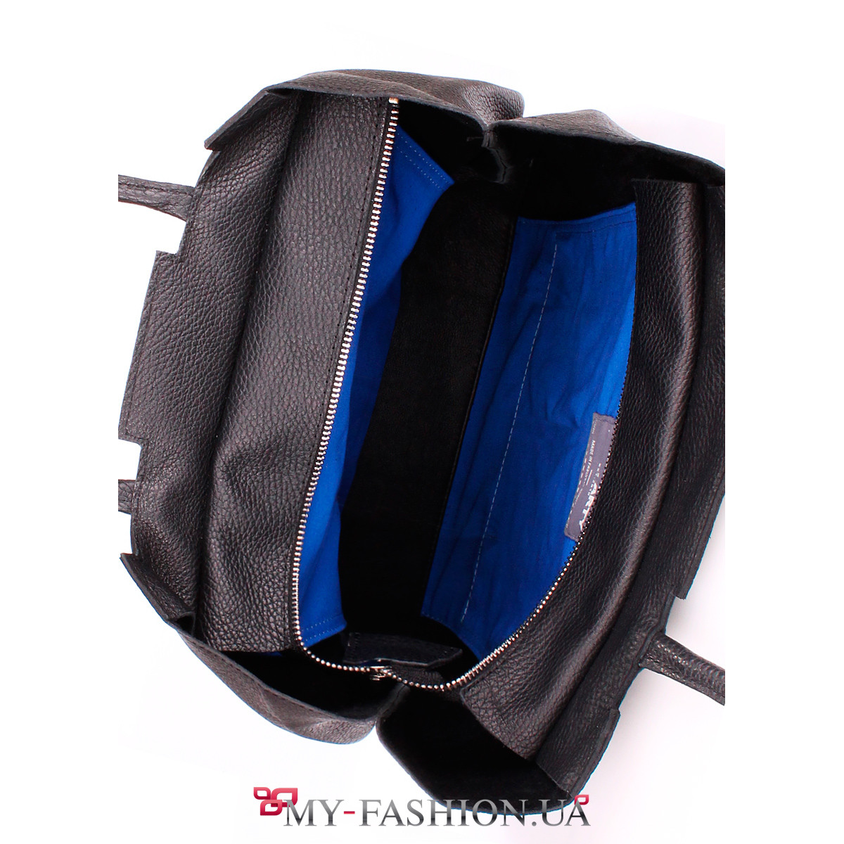 Стильная прямоугольная сумка прекрасно дополнит образ в лучших традициях стрит-фэшн. Натуральная кожа долго прослужит, качественная подкладка порадует вас удобством в использовании. Сумка декорирована тиснением, верхний срез рельефный. Внутри одно отделение и карманы, застёгивается на удобную металлическую молнию. Материал: натуральная кожа. Подкладка: хлопок. Размеры изделия: 34x39x10 см, высота с ручками - 60 см.