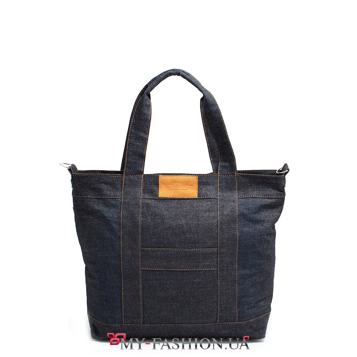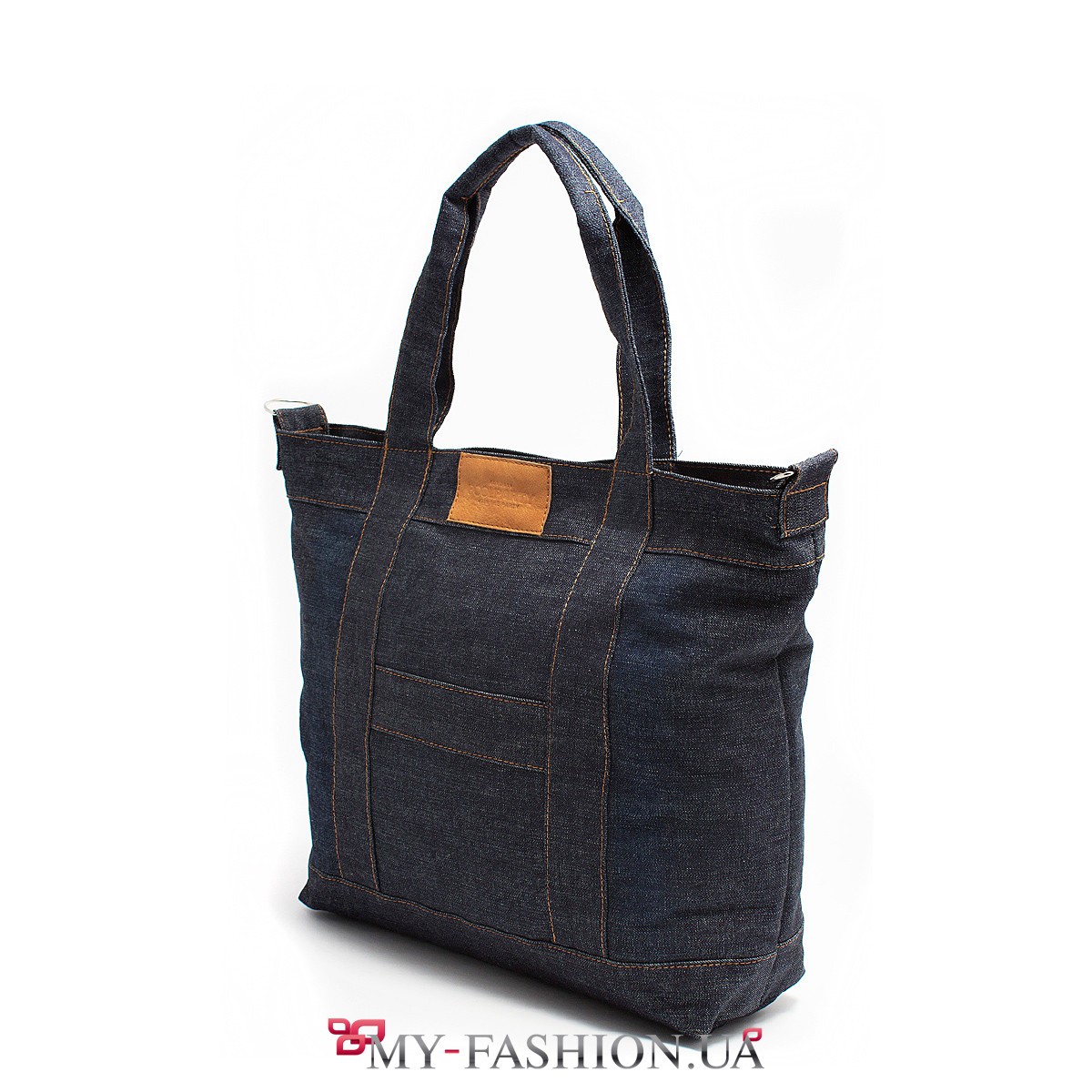 Простая и стильная тёмно-синяя джинсовая сумка идеально подойдёт к любому повседневному наряду и станет вашей верной спутницей на каждый день. Внутри одно отделение и небольшой карман для мелочей. Застёгивается на удобную металлическую молнию. Ручки короткие; есть возможность пристегнуть длинный ремень, позволяющий носить сумку через плечо. Материал: 100% коттон, подкладка - нейлон.Размеры изделия: 42х34х10 см, длина ремня - 140 см (регулируемый).