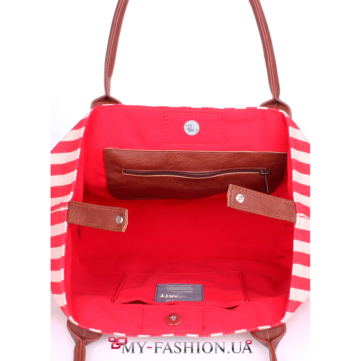 Яркая пляжная вместительная сумка — незаменимая вещь для летнего отпуска. Насыщенный красный цвет обеспечит хорошее настроение вам и окружающим. Сумка изготовлена из натурального хлопка, очень простого в уходе: если изделие испачкается, вы може просто постирать его в стиральной машинке. Внутри одно отделение и удобные кармашки. Застёгивается на магнитик и кнопку Материал: хлопок. Подкладка: текстиль. Размеры изделия: 46х29х14 см, высота с ручками - 48 см.