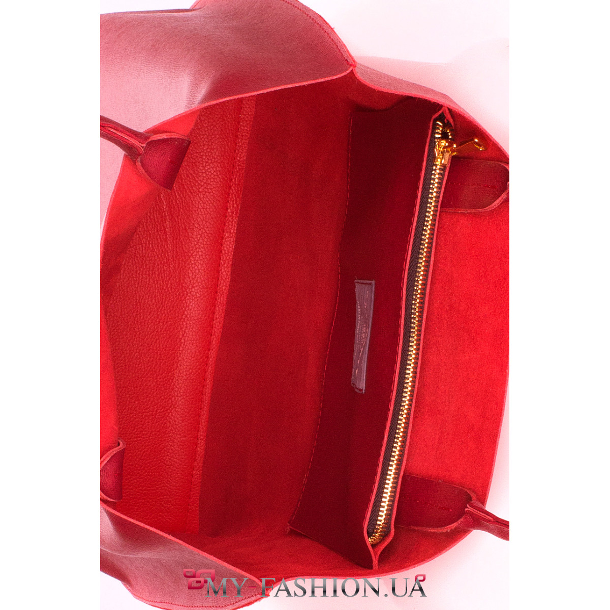 Лаконичная сумка из качественной натуральной кожи - обязательный элемент гардероба каждой девушки. Изделие необычной скруглённой формы с короткими удобными ручками. Внутри одно большое вместительное отделение и карман на надёжной застёжке-молнии. Сумка без подкладки, необработанные верхние срезу выглядят очень стильно и современно. Материал: высококачественная натуральная кожа. Размеры изделия: 35х37х14 см, высота с ручками - 52 см.