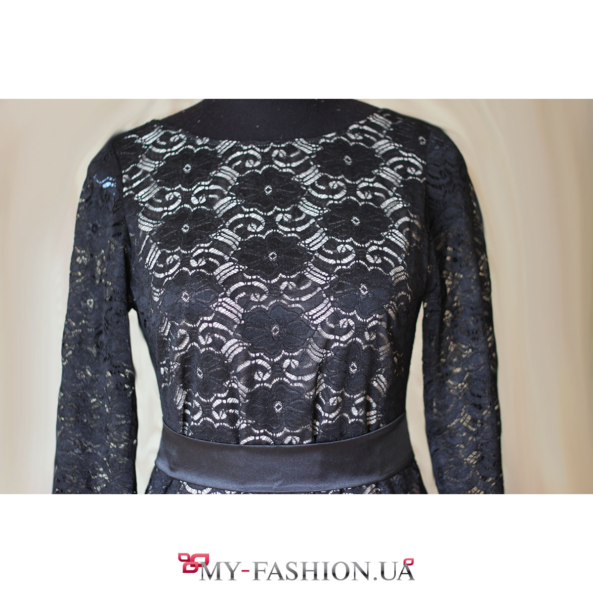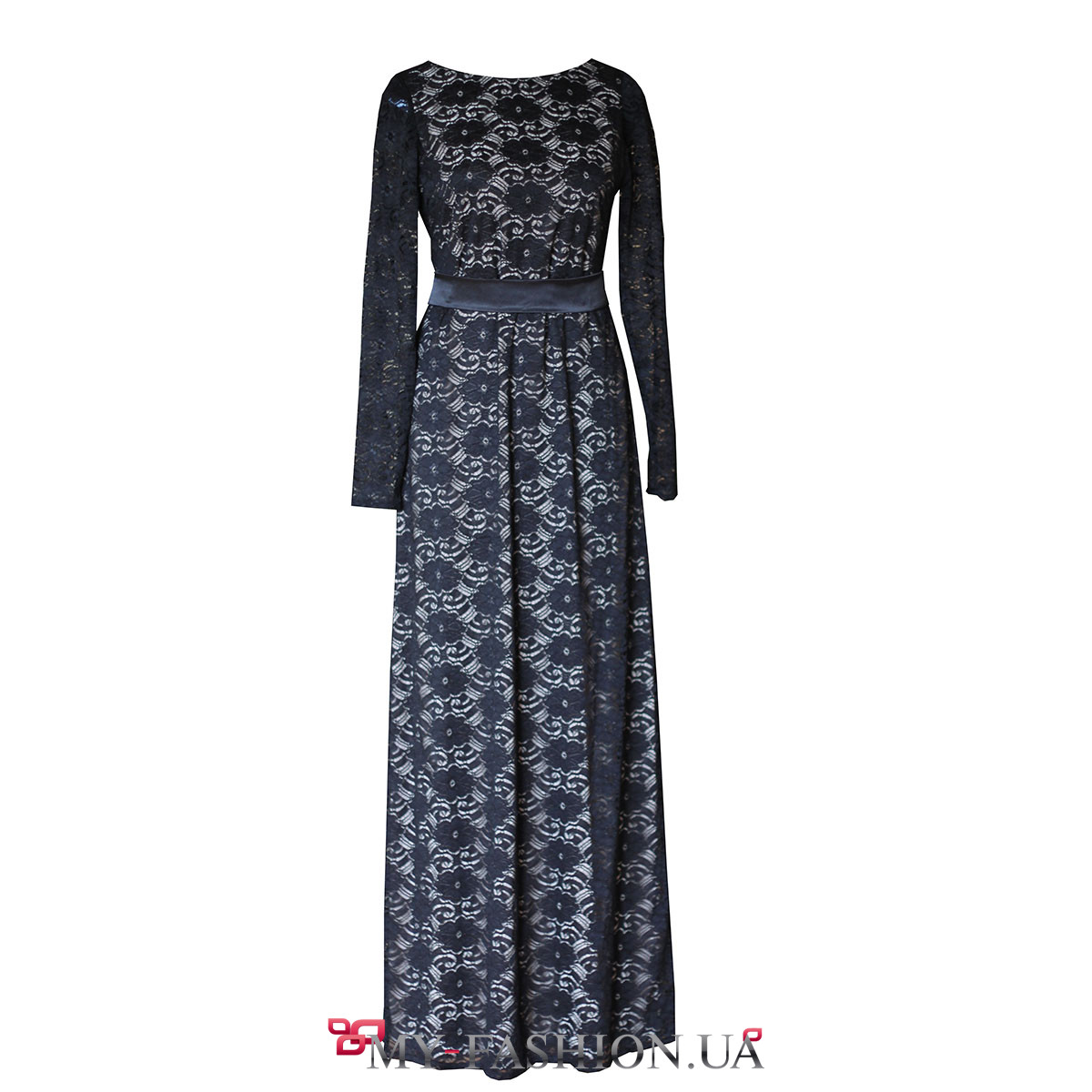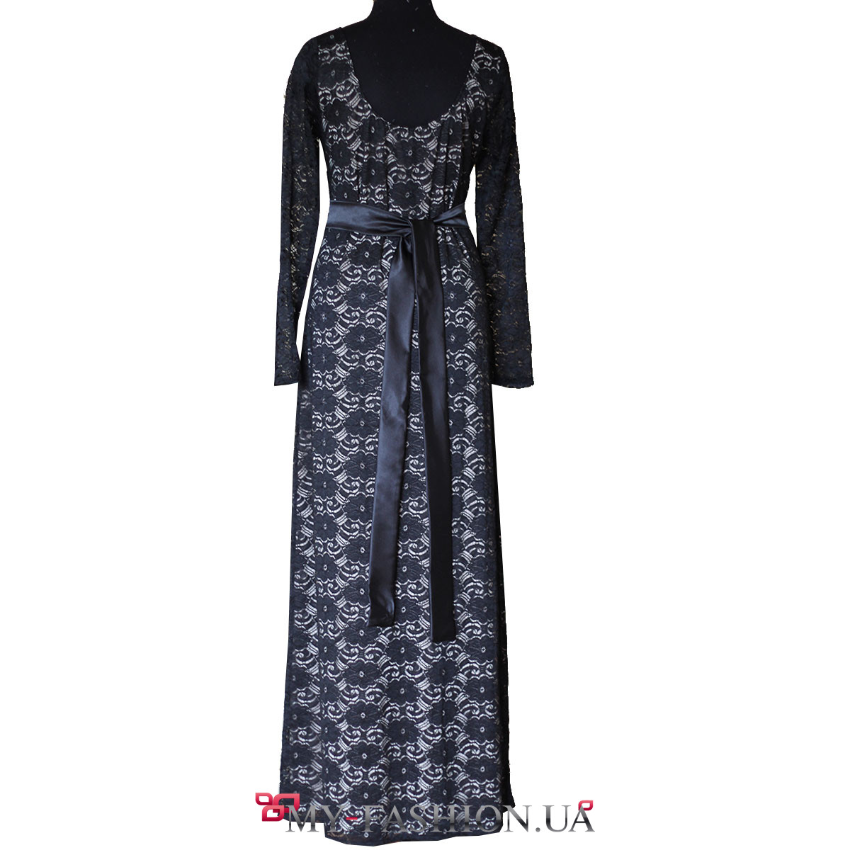 Элегантное длинное вечернее платье из полупрозрачного чёрного кружева выглядит изысканно и неповторимо. Изделие посажено на натуральную белую подкладку, которая отлично подчёркивает узор кружева. Длинные рукава прозрачные, без подкладки. Вырез горловины полукруглый, неглубокий; большой вырез сзади изящно открывает спинку и подчёркивает вашу осанку. Выполнено на натуральной хлопковой основе. Можно изготовить эту модель на заказ в любом размере по вашим индивидуальным меркам.